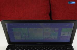 Singurul element negru al laptopului este rama din jurul ecranului TN cu diagonala de 11.6” şi rezoluţie 1366×768 pixeli. Calitatea acestuia este adecvată dacă luăm în calcul preţul final al produsului, chiar dacă tehnologia TN nu permite unghiuri de vizualizare prea bune. Culorile sunt decente iar contrastul, deşi slab, este mulţumitor atât timp cât priviţi tot timpul ecranul perpendicular din faţă, în ciuda faptului că valorile obţinute prin intermediul testelor sintetice sugerează cu totul altceva: