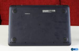 Carcasa reprezintă un magnet pentru amprente, în special pe versiunea albastru închis testată de noi, ceea ce afectează aspectul fizic plăcut. În plus, capacul este destul de flexibil, motiv pentru care îţi recomandăm să nu aşezi obiecte grele pe el şi să ai grijă cum asezi laptop-ul în rucsac.