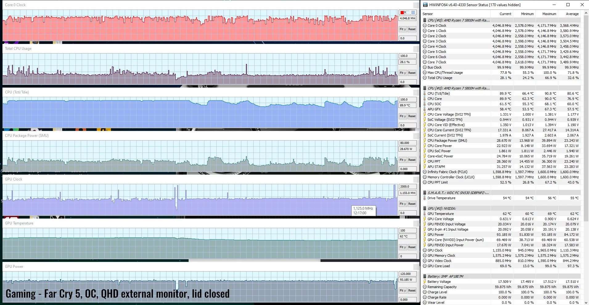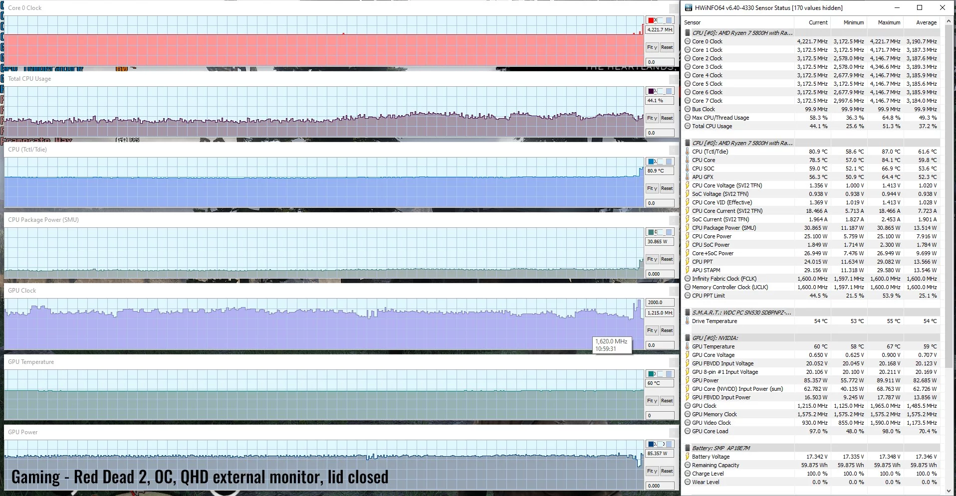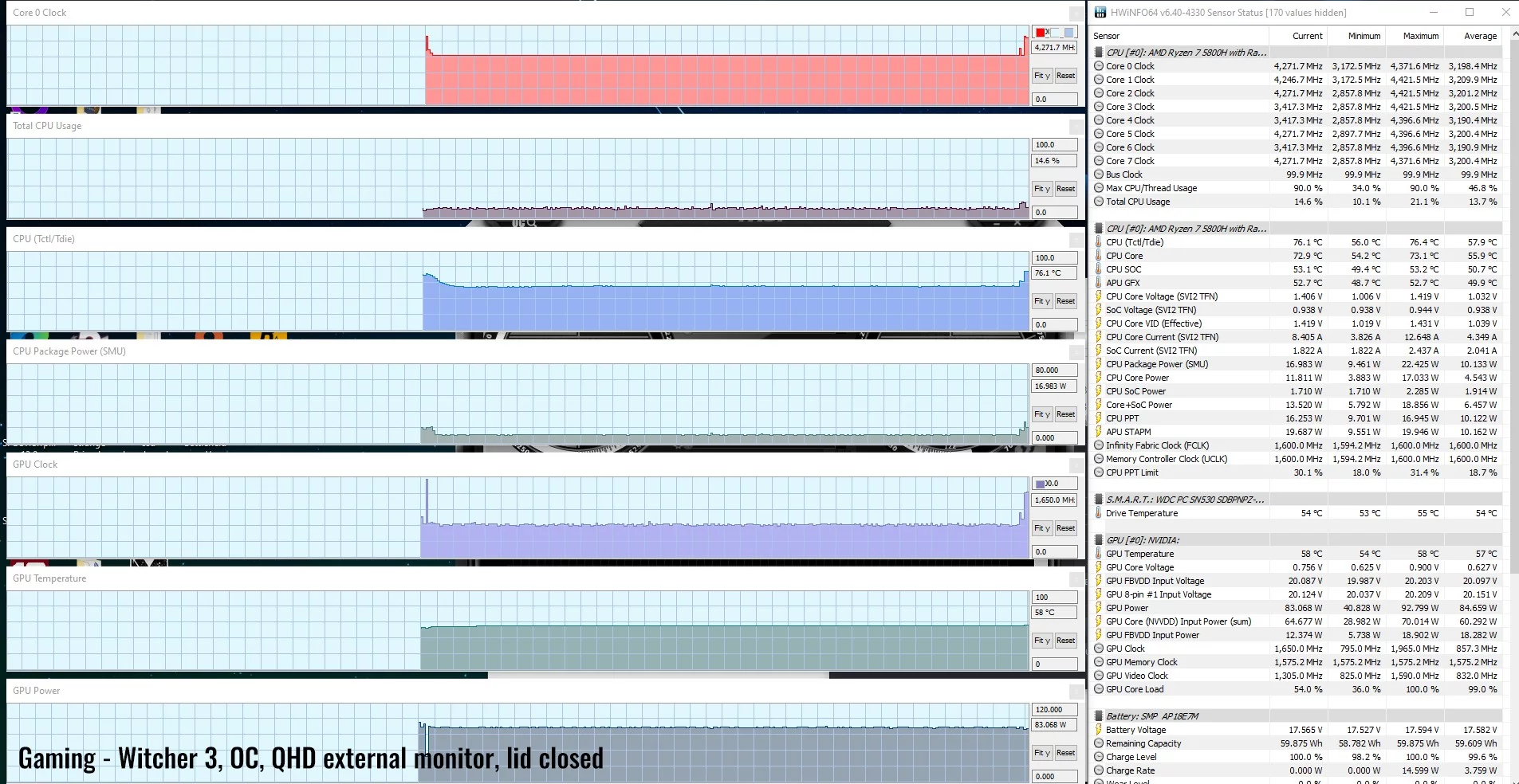 | AMD Ryzen 7 5800H + RTX 3080 Laptop 80+W | FHD High Perf | FHD OC | FHD OC External | QHD OC external |