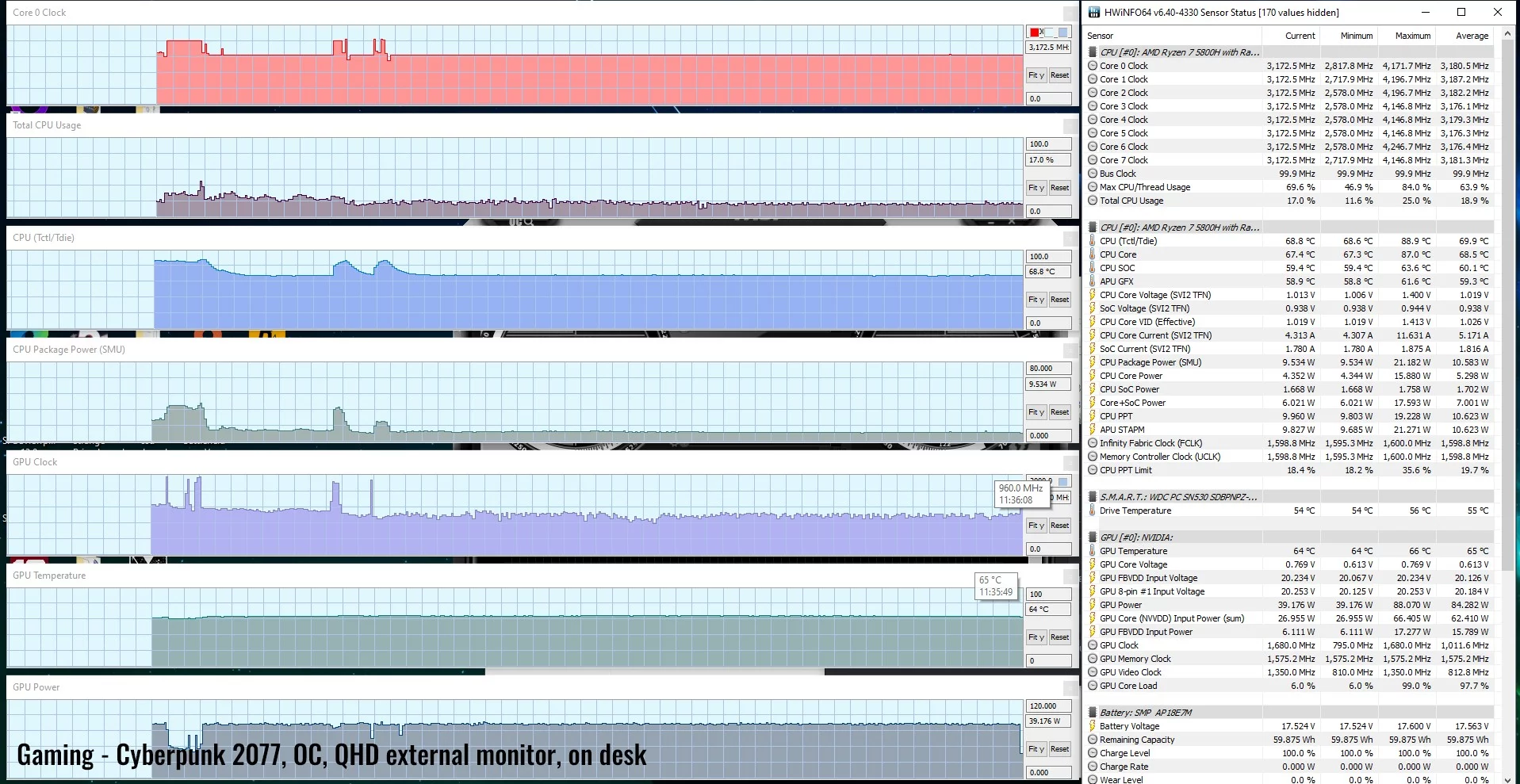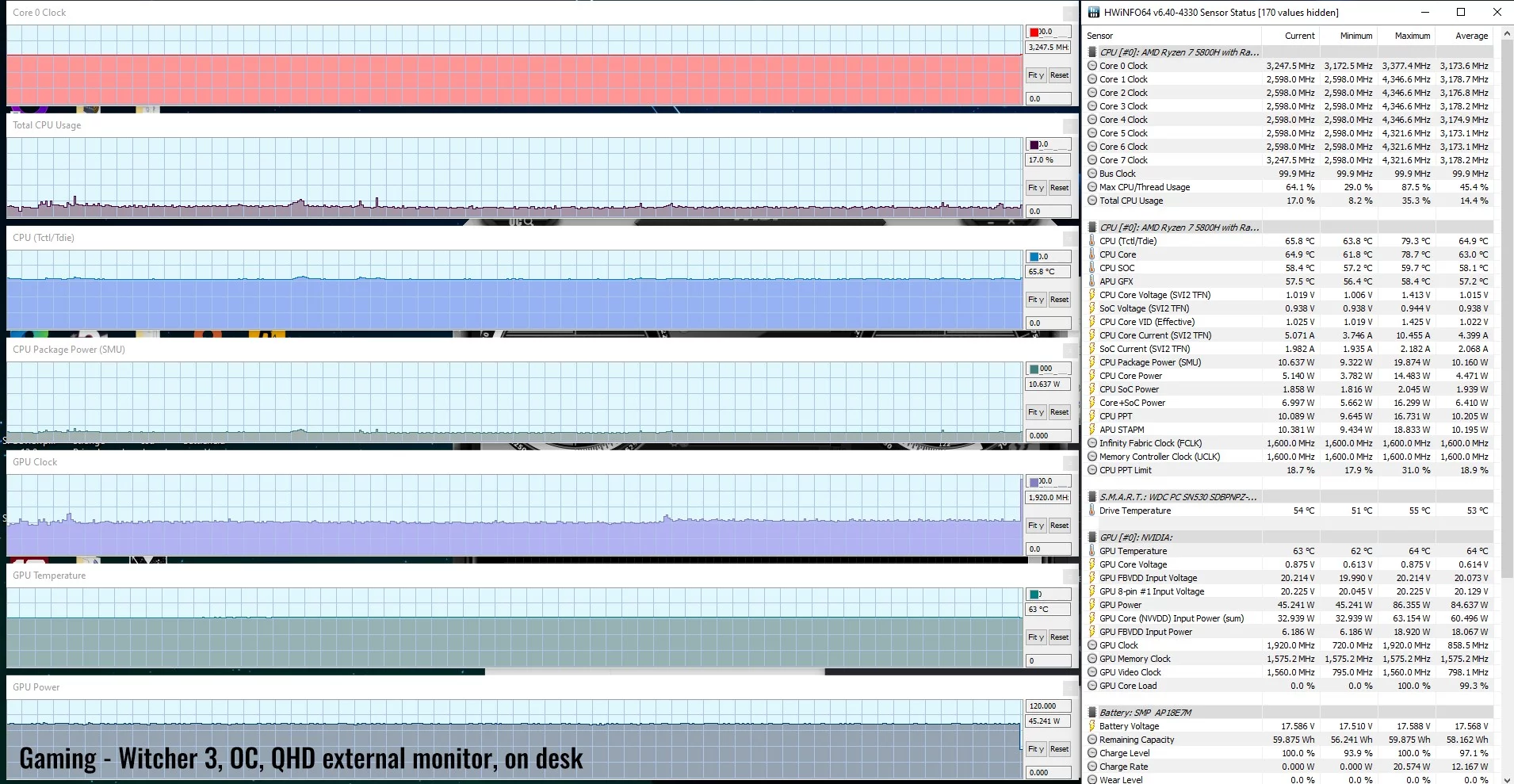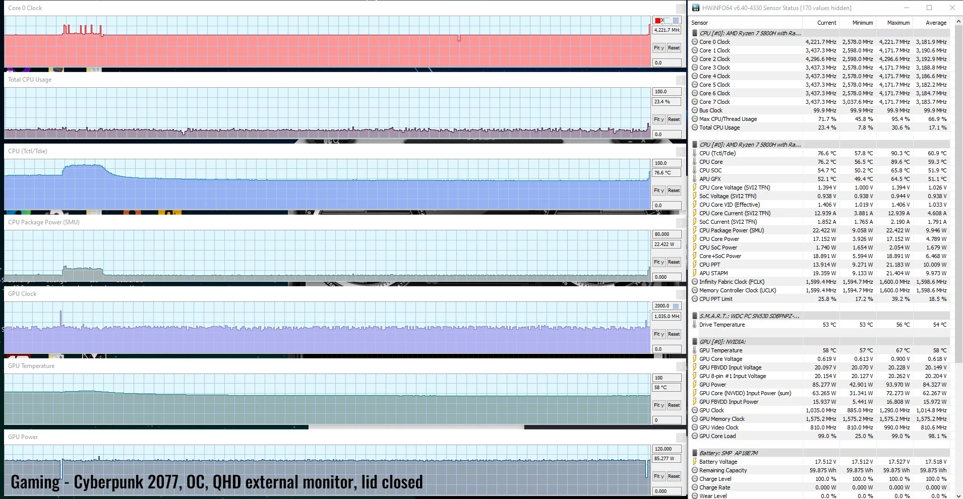 | AMD Ryzen 7 5800H + RTX 3080 Laptop 80+W | FHD High Perf | FHD OC | FHD OC External | QHD OC external |