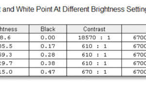 - negru la luminozitate maximă: 0.47 cd/m2;