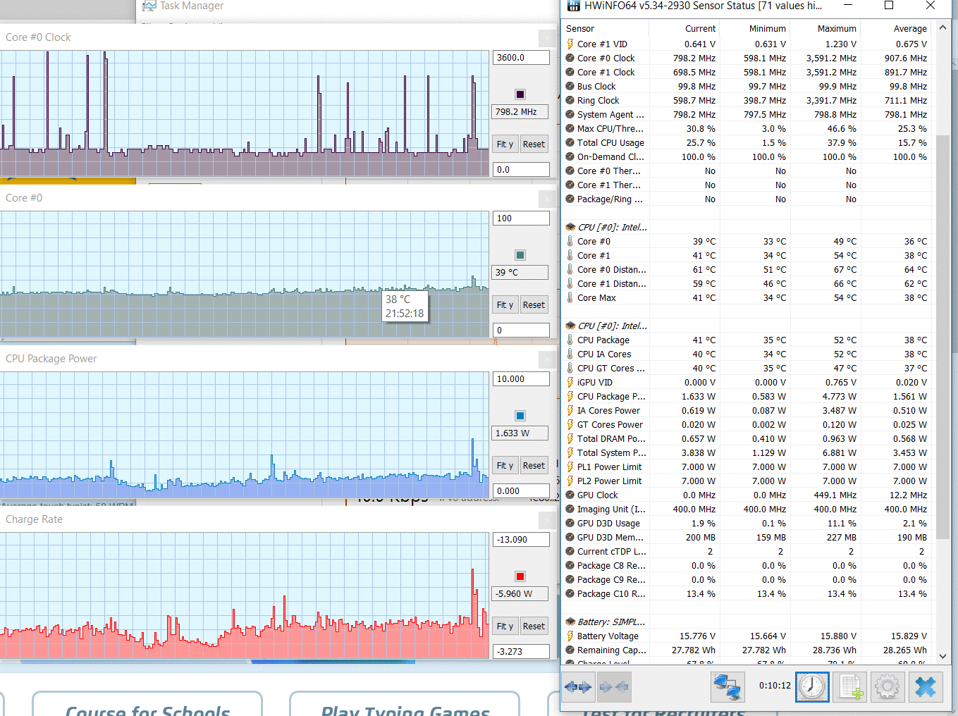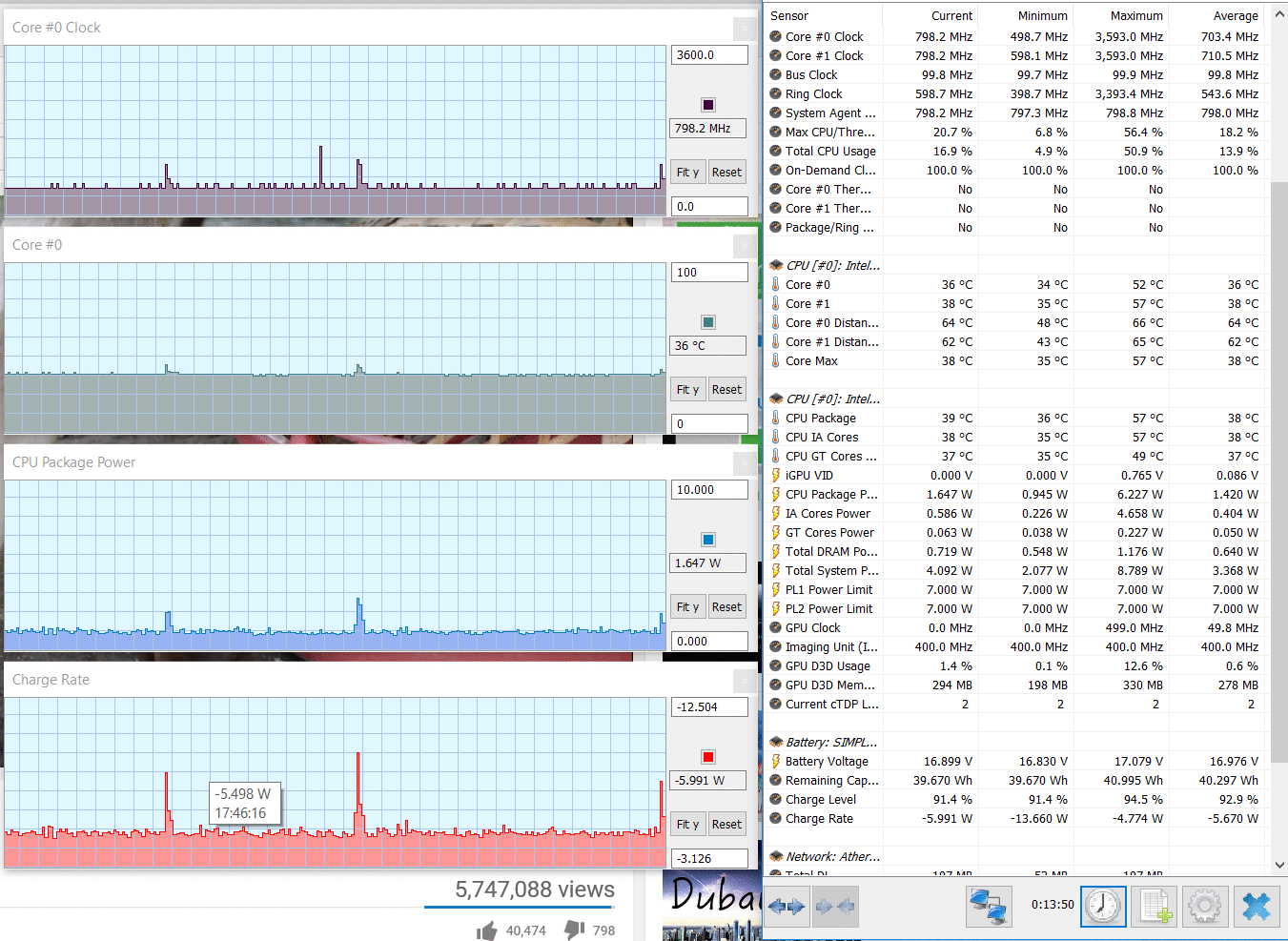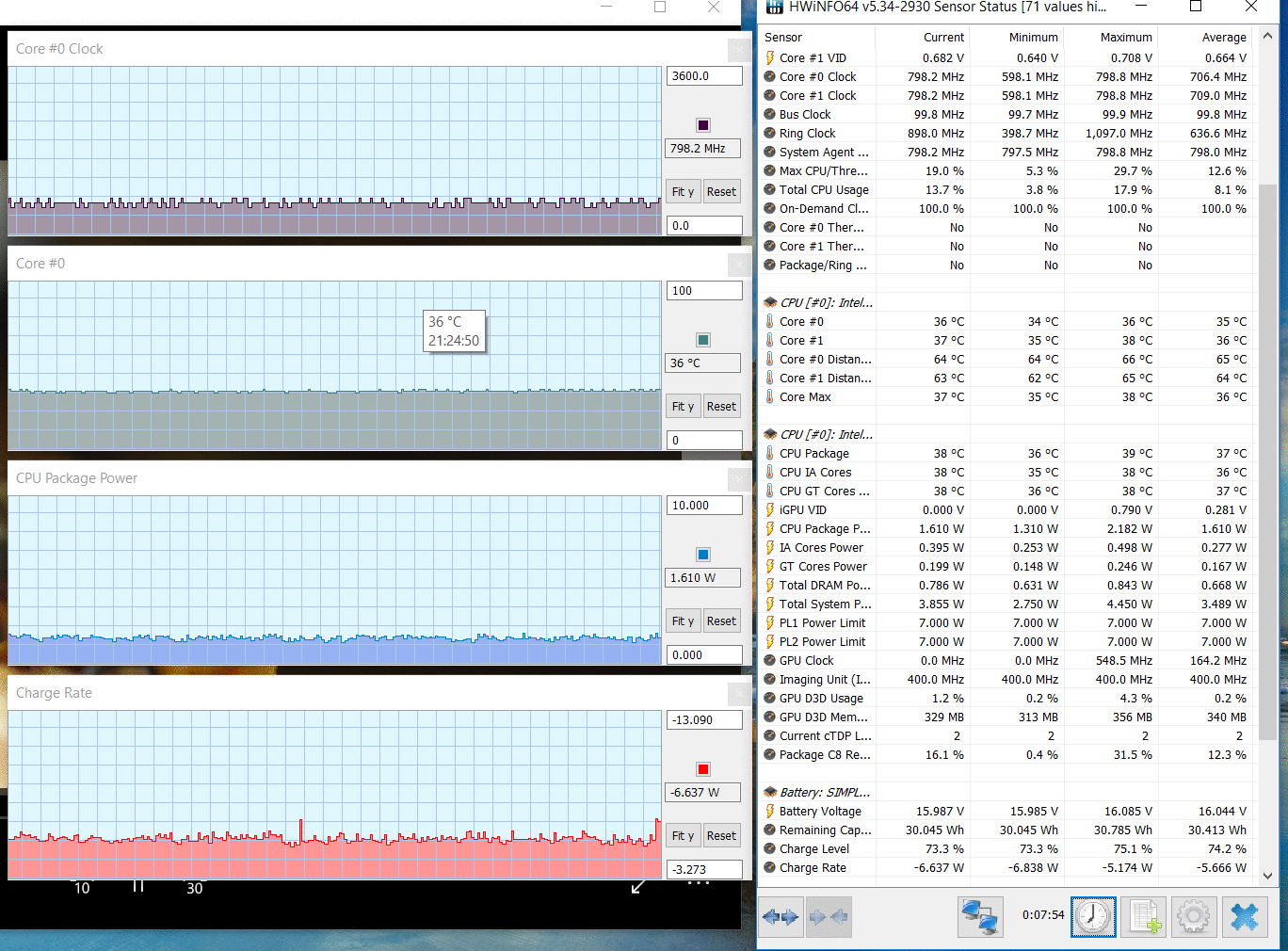 - 7 ore şi 20 de minute – video 1080p fullscreen pe Youtube în Internet Explorer, Balanced Mode, ecran la 40%, Wi-Fi ON;