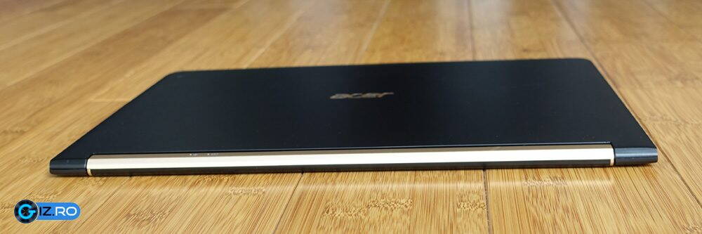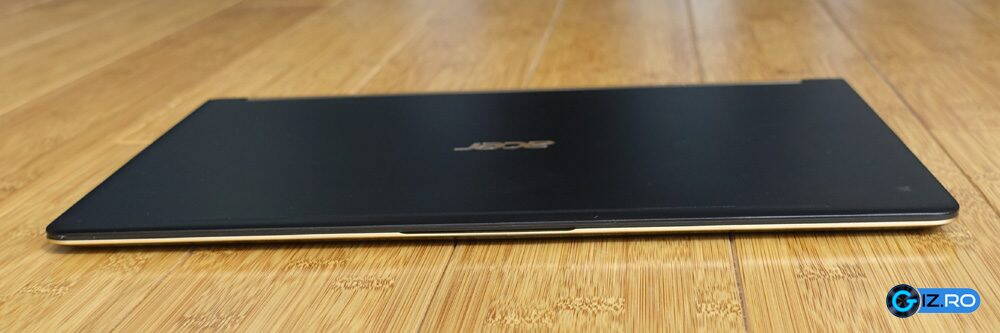 Acer Swift 7 este un ultraportabil solid şi bine construit datorită formatului unibody şi a carcasei realizată integral din aluminiu, iar capacul său este de asemenea bine realizat şi flexează foarte puţin chiar şi atunci când este apăsat puternic. Toate acestea sunt oarecum surprinzătoare, având în vedere că laptopul are o grosime de numai 9.98 mm şi cântăreşte doar 1.1 kg.