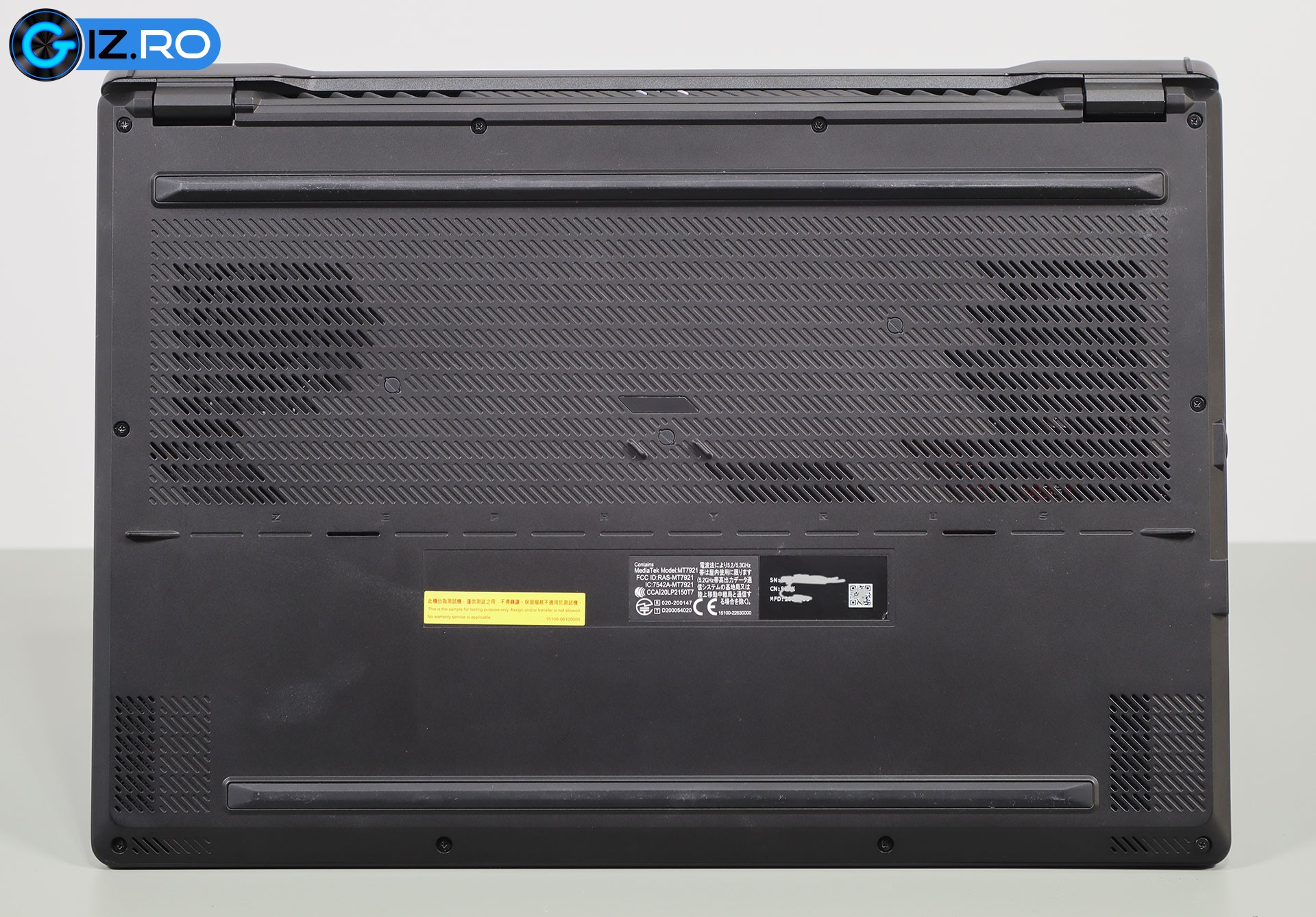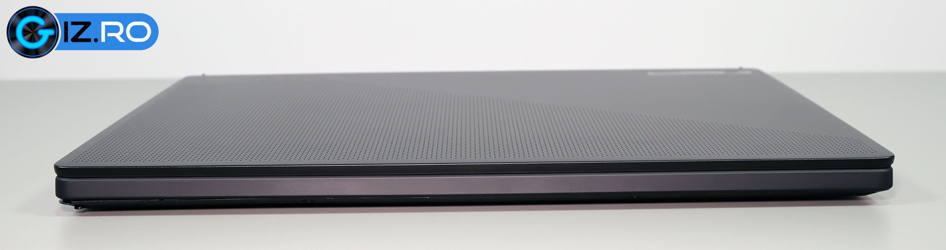 ROG Zephyrus M16 are probleme și cu rigiditatea carcasei, capacul inferior torsionându-se și emițând zgomote neplăcute atunci când laptopul este apucat de margini sau chiar la apăsări ușoare pe arm-rest, ceea ce nu este în regulă pentru gama din care face parte. Sper ca producătorul să încerce pe viitor fie să revină la un design mai tradițional și mai fiabil, fie să adopte mai pe larg designul văzut de curând la ROG Zephyrus S17, cea mai bună implementare puternică și ușoară reușită de ASUS până acum.