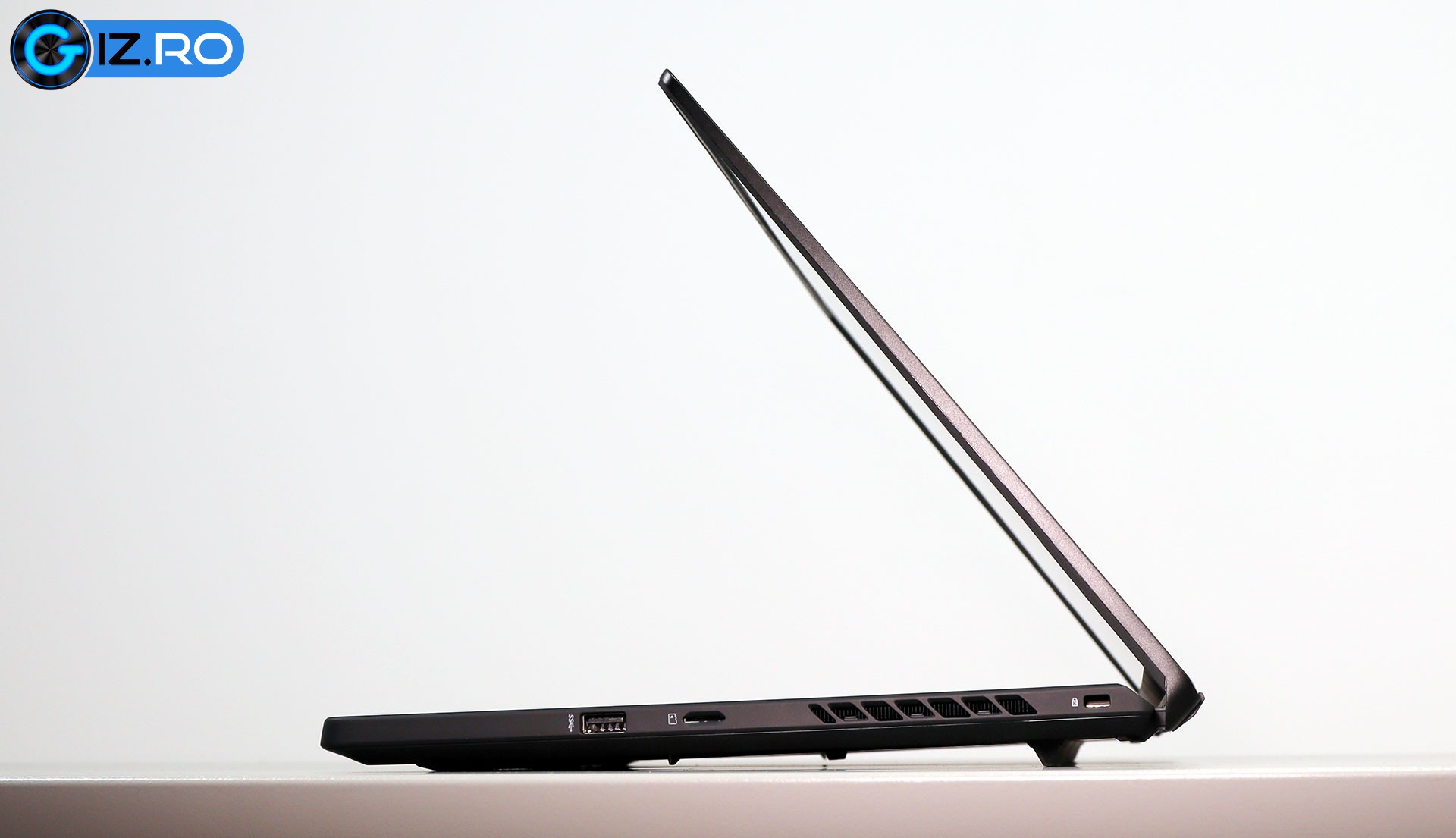 Noutatea este compatibilitatea Thunderbolt 4, însă porturile USB-C din stânga sunt foarte aproape de muchia frontală și cablurile înfipte în ele vor cam deranja. Conectorul HDMI este în continuare de tip 2.0b, nu 2.1 cum ne-am fi dorit, deoarece este oferit de către aceeași interfață grafică Intel din procesor.