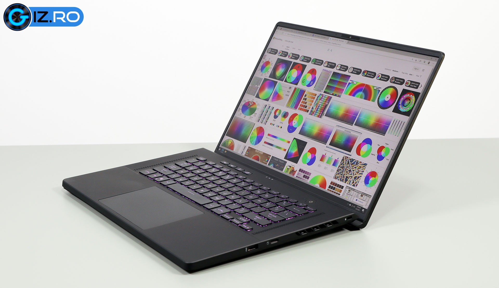 Mi-au plăcut ecranele QHD alese de ASUS pentru laptopurile Zephyrus G15 șî ROG Scar 15, iar cel de față este la fel, dar mai mare. Ecranul de 16” are o rezoluție de 2560 x 1600 pixeli, o luminozitate de peste 400 nits, contrast mai mare de 1000:1 și o acuratețe coloristică care acoperă integral spectrul DCI-P3.
