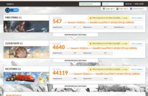- 3DMark 13: Ice Storm – 44119, Cloud Gate – 4640, Fire Strike – 547 ;