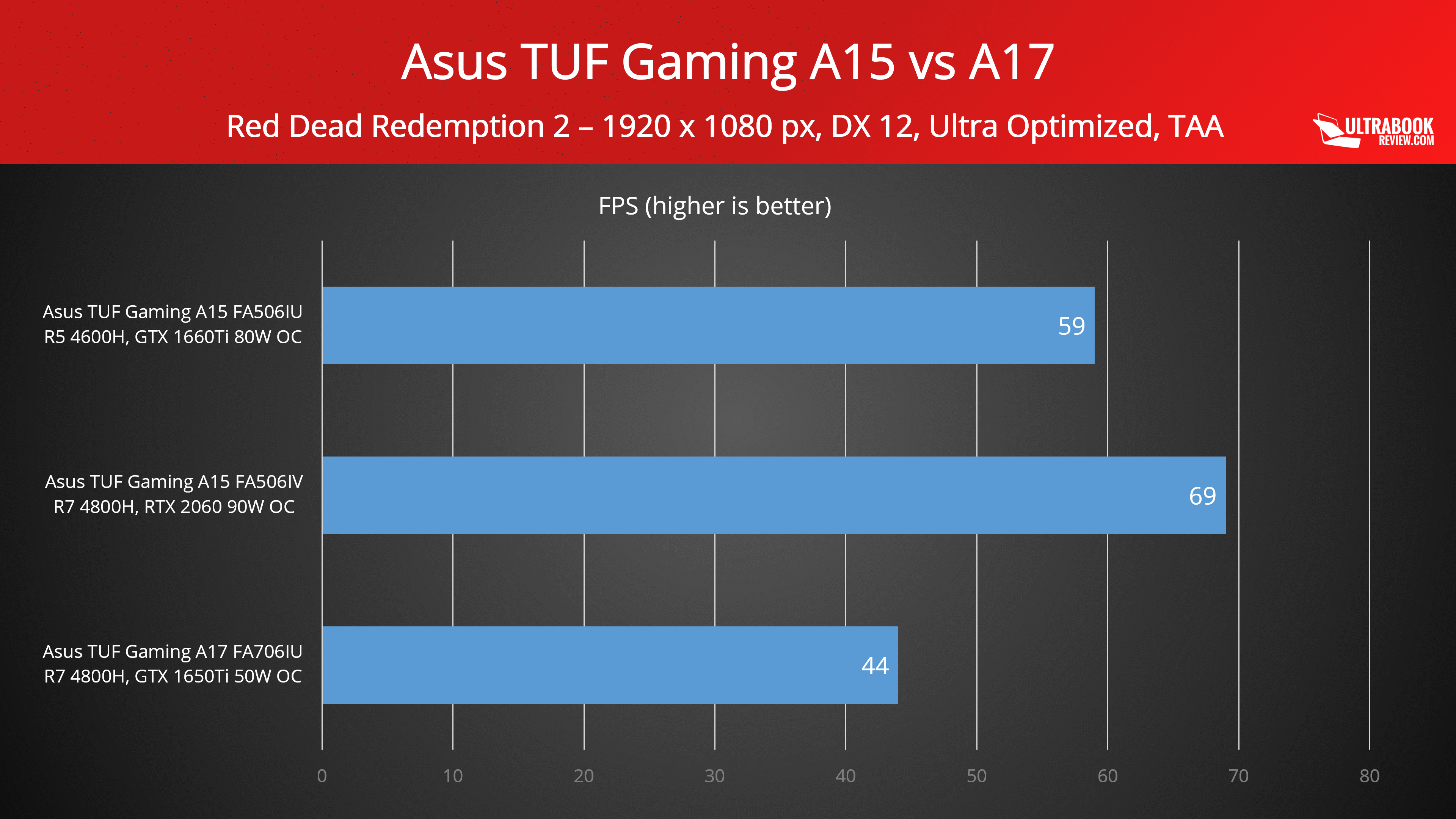 Red Dead Redemption 2 (DX 12, Ultra Optimized, TAA) | 59 fps | 44 fps | 69 fps |