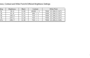 - luminozitate maximă în mijlocul ecranului: 289 cd/m2 cu rulare de la priză;