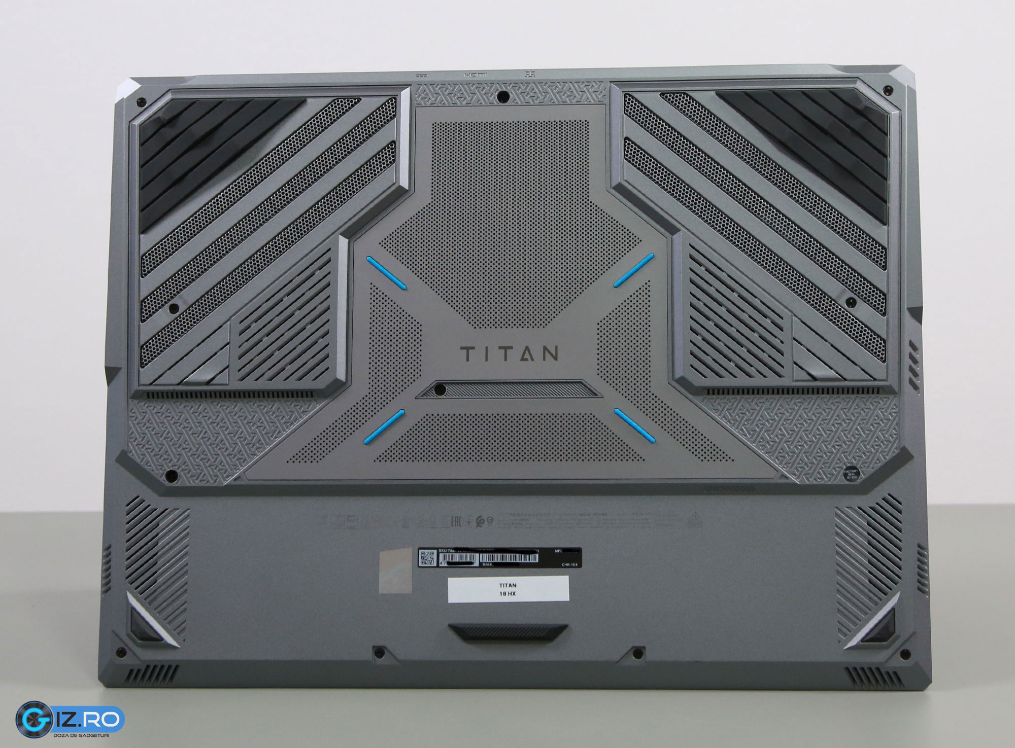 Per total, acest MSI Titan 18 HX este un șasiu excelent din punct de vedere al materialelor, al calității construcției și al ergonomiei. Totuși, unele dintre alegerile de design sunt discutabile, cu un amestec de elemetne negre și gri cu accente albastre, care ar putea împiedica acest laptop să fie o alegere acceptabilă în mediile foarte stricte de birou/școală.