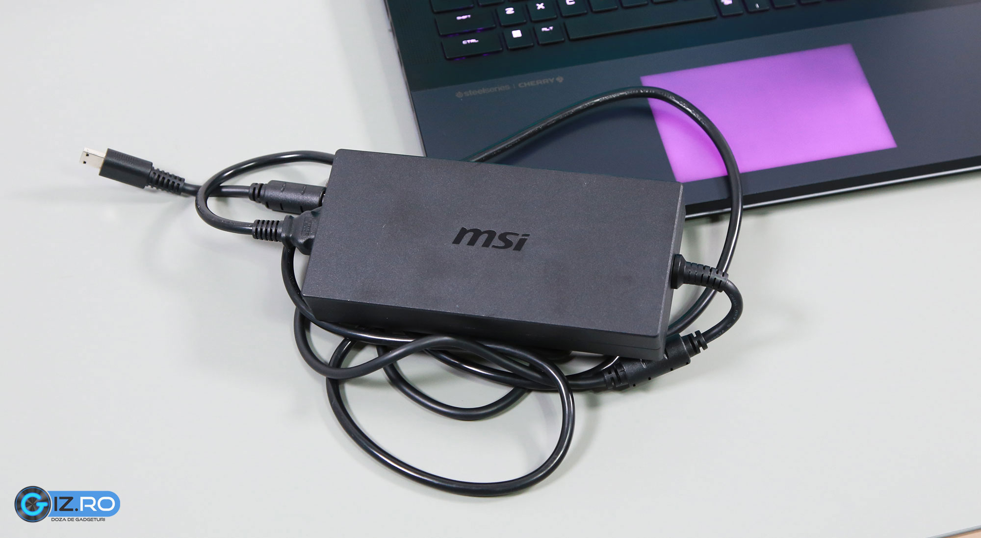Voi mai adăuga că acest notebook Titan 18 vine cu încărcator de 400W, o unitate destul de voluminoasă și grea, de peste 1,15 kg, și cu un cablu destul de scurt pe partea atașată la cărămidă. În comparație, încărcătoarele moderne de 330W oferite de laptopurile concurente sunt ceva mai compacte și tind să ofere cabluri mai lungi și mai ergonomice.