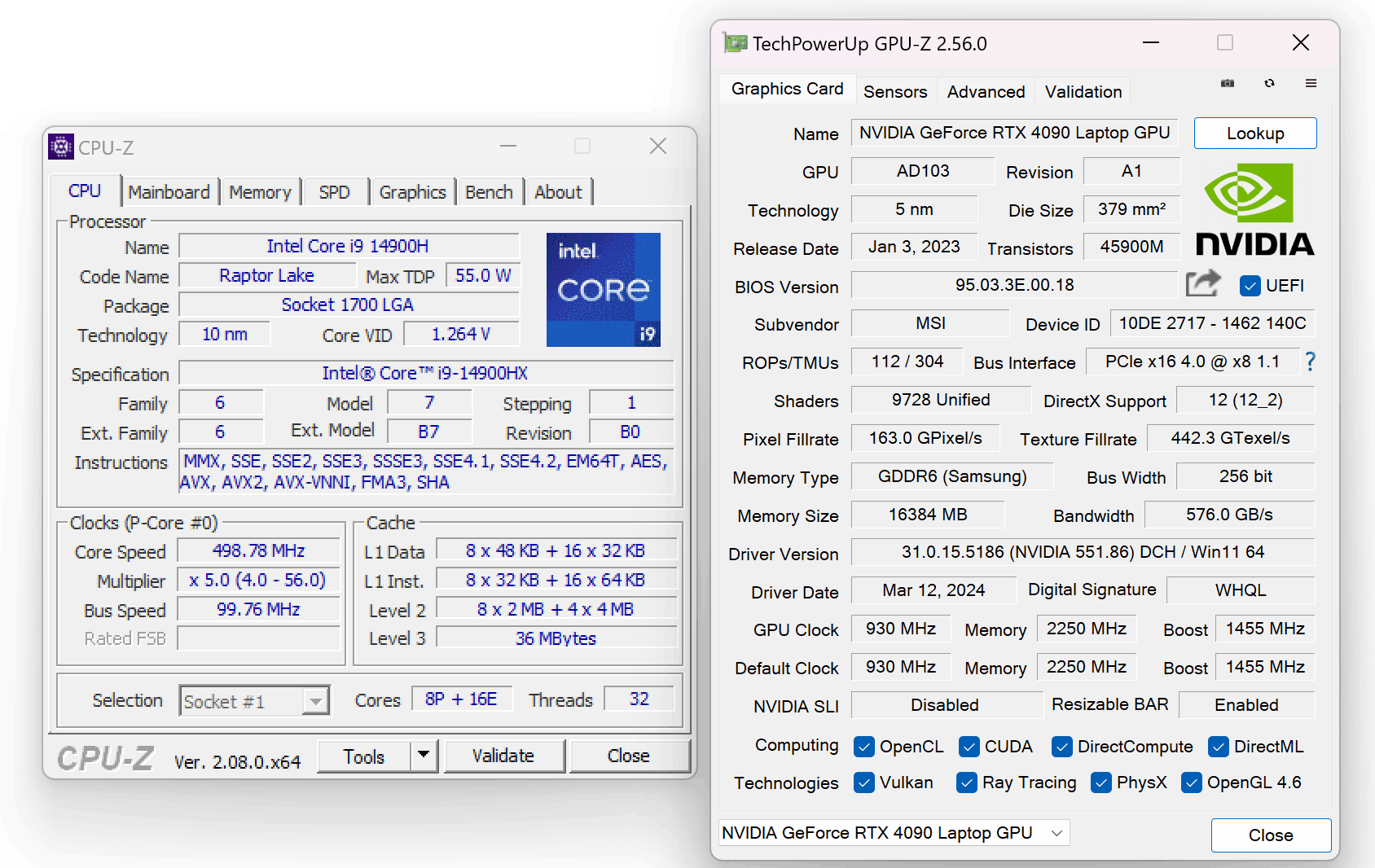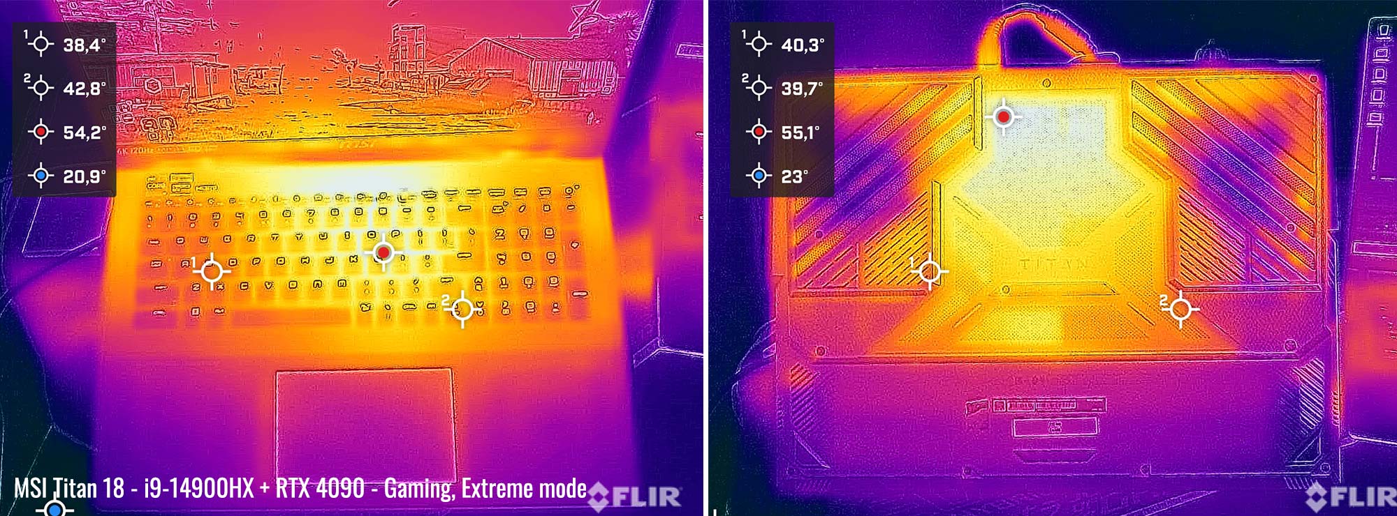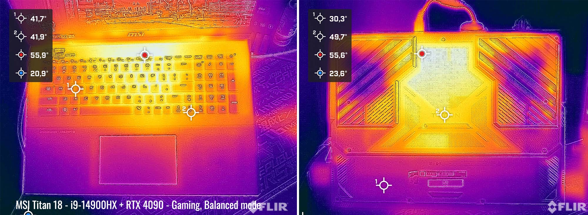 | MSI Titan 18, Core i9-14900HX + RTX 4090 Laptop 150-175W | 4K+ Extreme, dGPU, on desk | QHD+ Extreme, dGPU, on desk | QHD+ Balanced, dGPU, on desk | QHD+ Silent, dGPU, on desk | FHD+ Extreme, dGPU, on desk |
