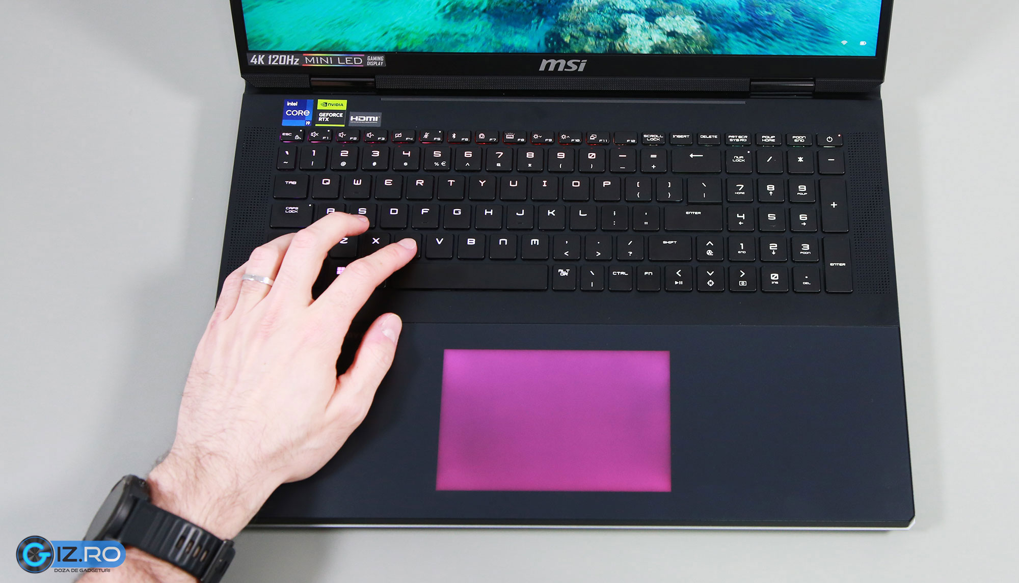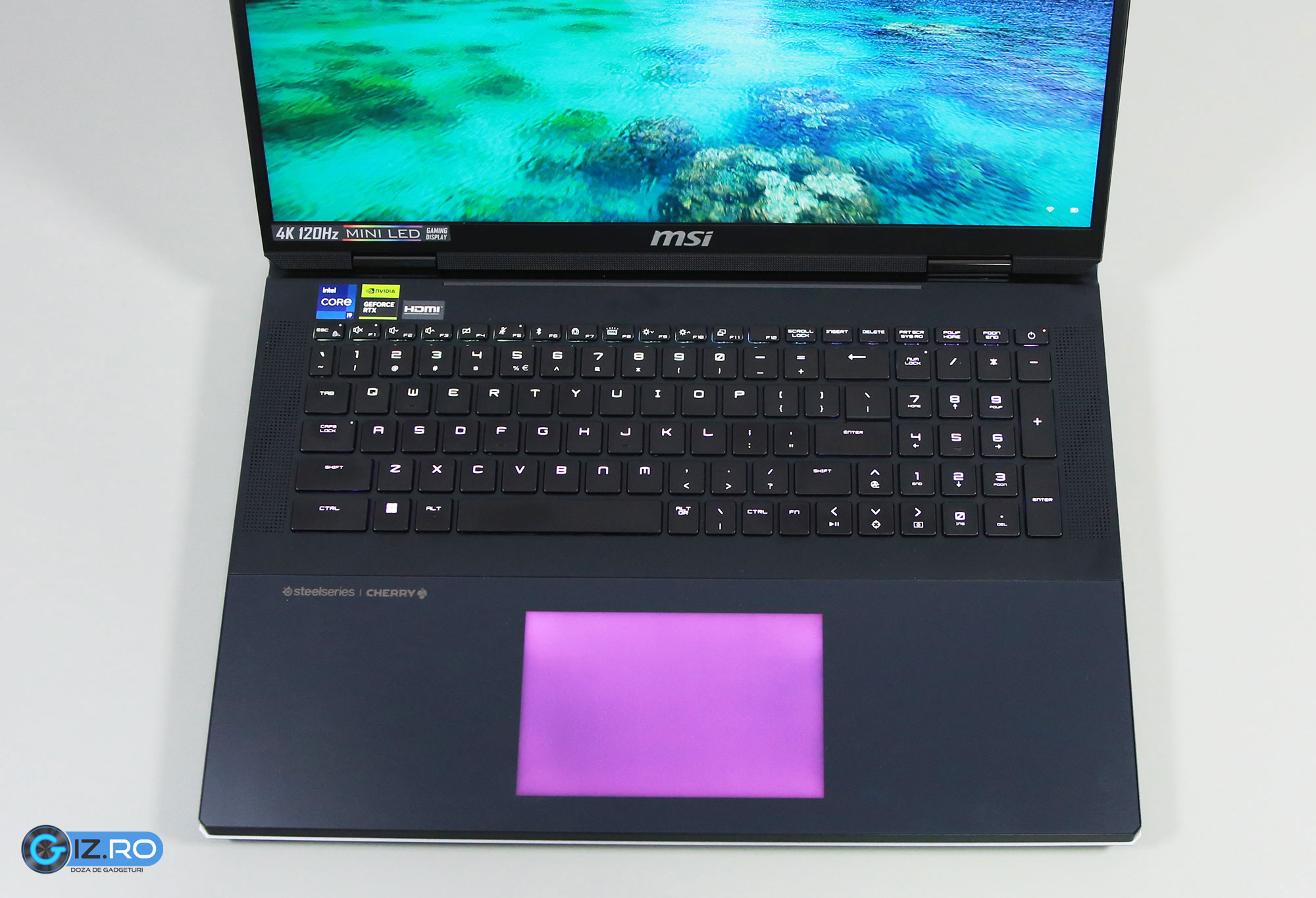 Tastatura și touhcpadul de pe această serie Titan 18 HX sunt destul de diferite față de ceea ce oferă concurența.