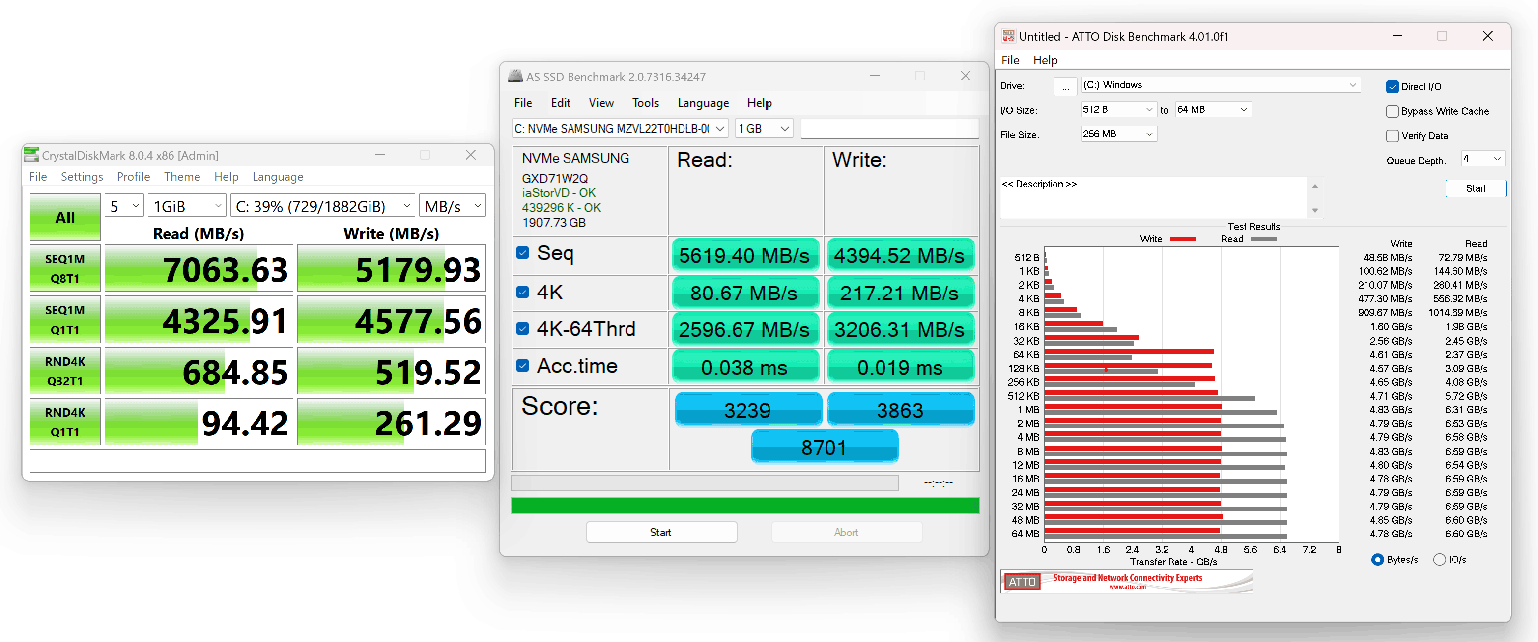 | Stocare | 2 TB SSD (Samsung PM9A1 drive) – 1x M.2 PCI gen5, 2x M.2 PCIe gen4 sloturi |