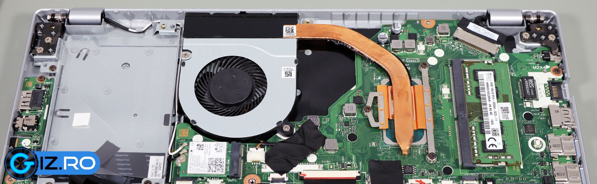 Sistemul de răcire folosit pentru Aspire 5 este unul simplu, cu un singur ventilator și o singură conductă de transfer termic lată, dar cam scurtă. După cum se vede, sistemul de răcire nu este gândit pentru o placă video suplimentară, chiar dacă specificațiile preliminare pentru A514-54 afișate de unele magazine cuprind și un adaptor NVIDIA MX450.