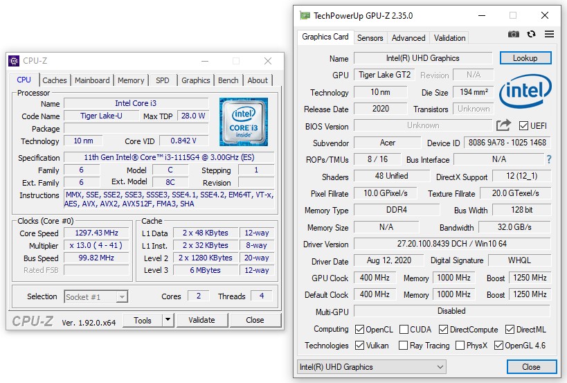 La fel ca multe alte ultrabook-uri din generația actuală, și Aspire 5 este clădit pe platforma Tiger Lake de la Intel. Procesorul Intel Core i3-1115G4 oferă două nuclee și patru fire de execuție, cel mai modest membru al familiei, este suficient de bun pentru activități uzuale, însă recomandăm alegerea unui model care folosește procesorul i5-1135G7, acesta oferind patru nuclee, opt fire de execuție și mai puternica interfață grafică Intel Xe în locul vechiului Intel UHD de pe procesorul i3.