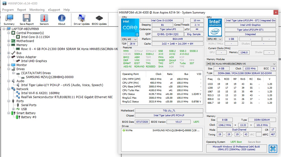 Modelul testat de noi are o configurație de bază, Acer Aspire 5 A514-54 oferind un procesor Intel Tiger Lake Core i3-1115G4 cu interfață video Intel UHD, 8 GB de memorie DDR4 2666 MHz și o unitate SSD cu capacitate de 128 GB de la Samsung. Acest exemplar a fost testat cu software-ul disponibil la finele lui noiembrie 2020, însă nu ne așteptăm la schimbări în cazul modelelor disponibile comercial.