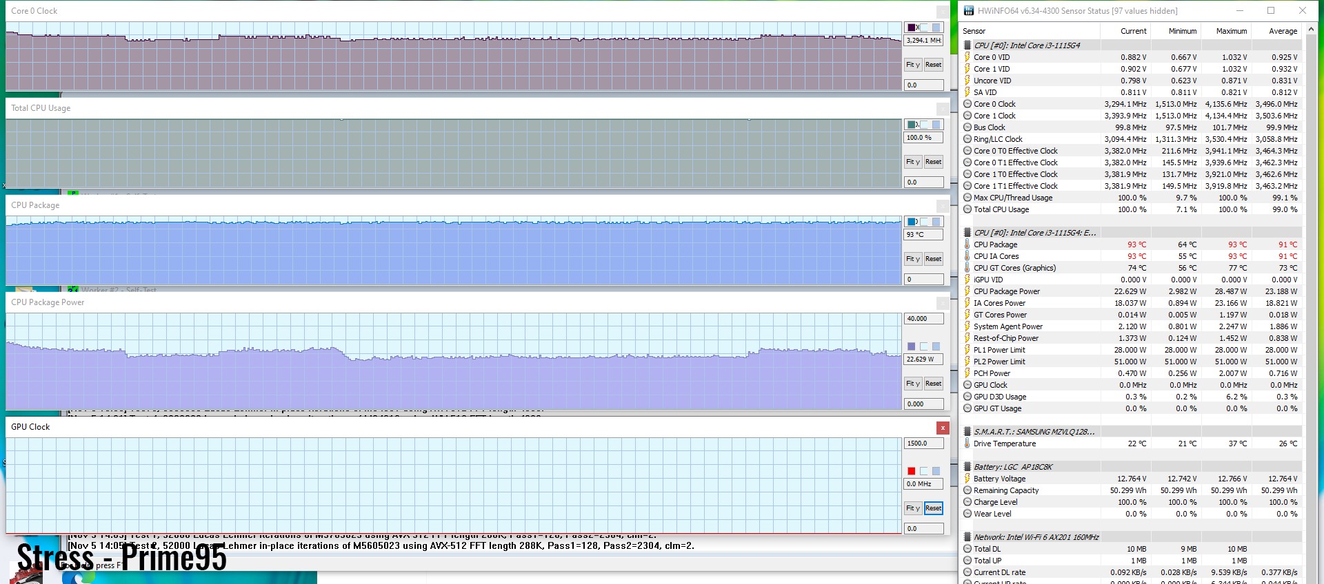 Am trecut apoi la mai pretențiosul test CineBench R20, care a obținut rezultate similare, în timp ce brutalul Prime95 a fost stabil la un TDP 22 – 24W și temperaturi de 90 de grade. Temperaturile de lucru devin factorul limitator în cazul activităților intense prelungite, ceea ce nu este de mirare ținând cont că vorbim de un ultrabook accesibil cu un sistem de răcire simplu.