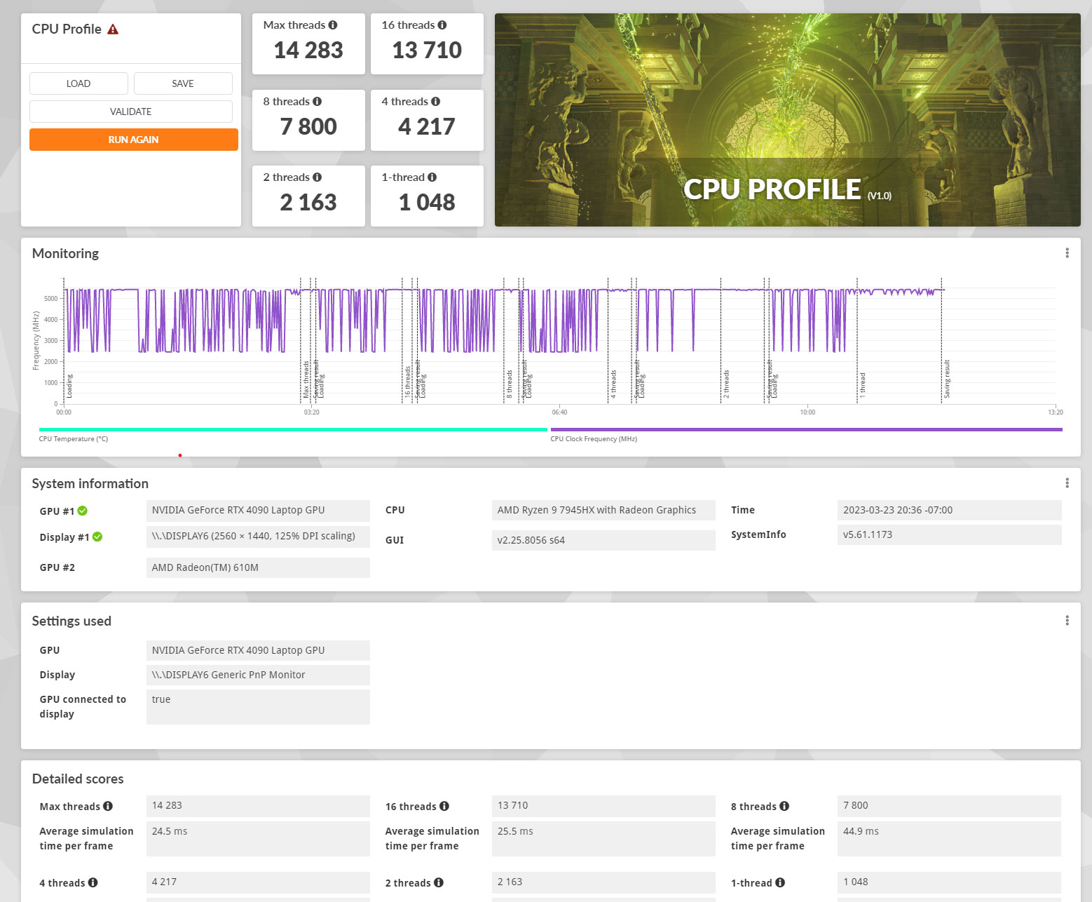 Privind în ansamblu, AMD Ryzen 9 7945HX din Scar 17 2023 este cea mai puternică platformă mobilă testată până acum. Rivalul direct Intel Core i9-13980HX a fost cu circa 10 – 15% mai lent în implementări similare si mai gurmand energetic, diferența reducându-se în cazul Scar 18 unde am putut reduce tensiunea de alimentare a procesorului Intel și oferindu-i astfel șanse sa se desfășoare mai bine.