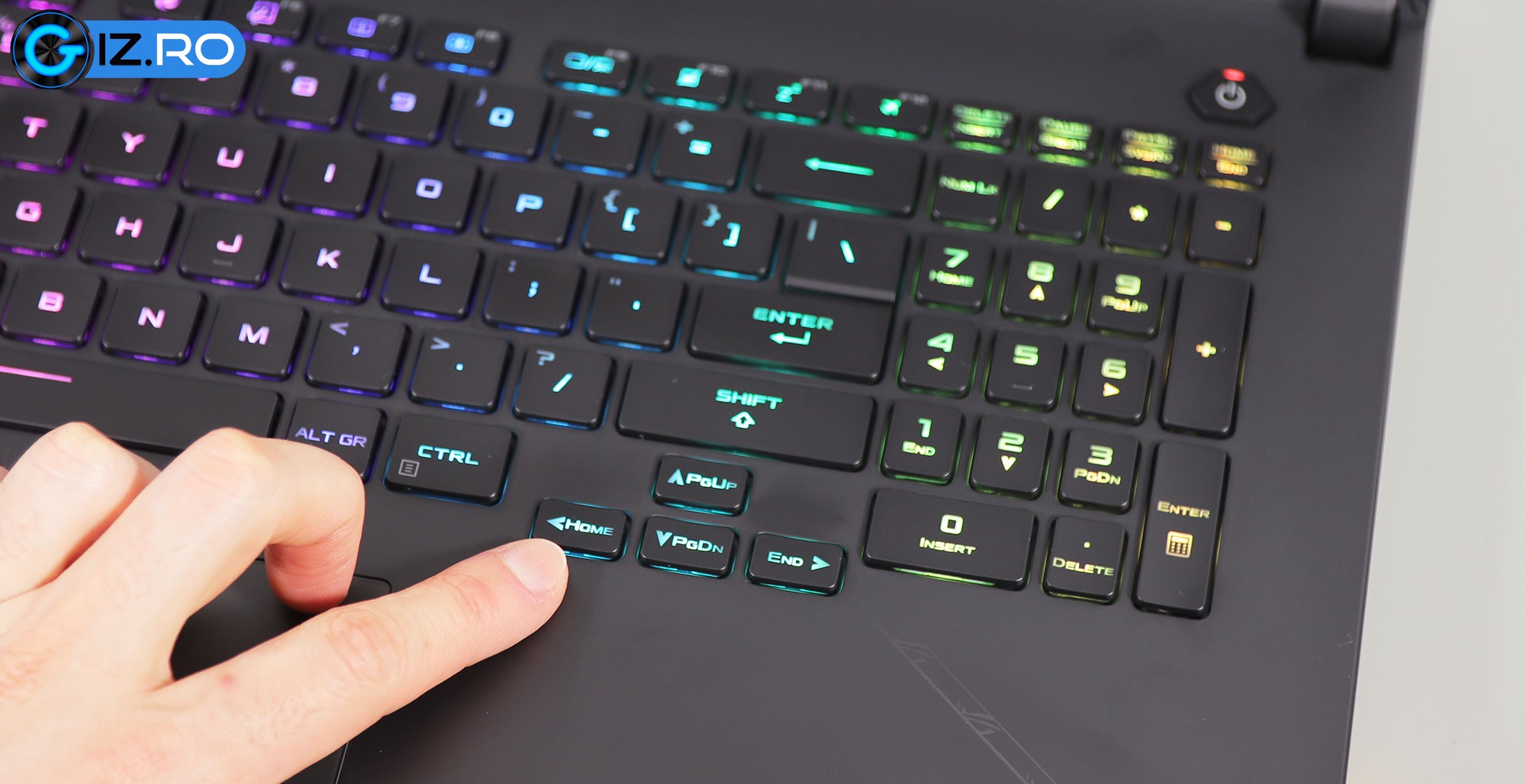 Tastatura și touchpad-ul sunt identice cu cele cunoscute de la generația anterioară ROG Strix Scar 17 2022, având deci de-a face cu o implementare rubber-dome standard cu iluminare RGB care poate fi particularizată la nivel de tastă.