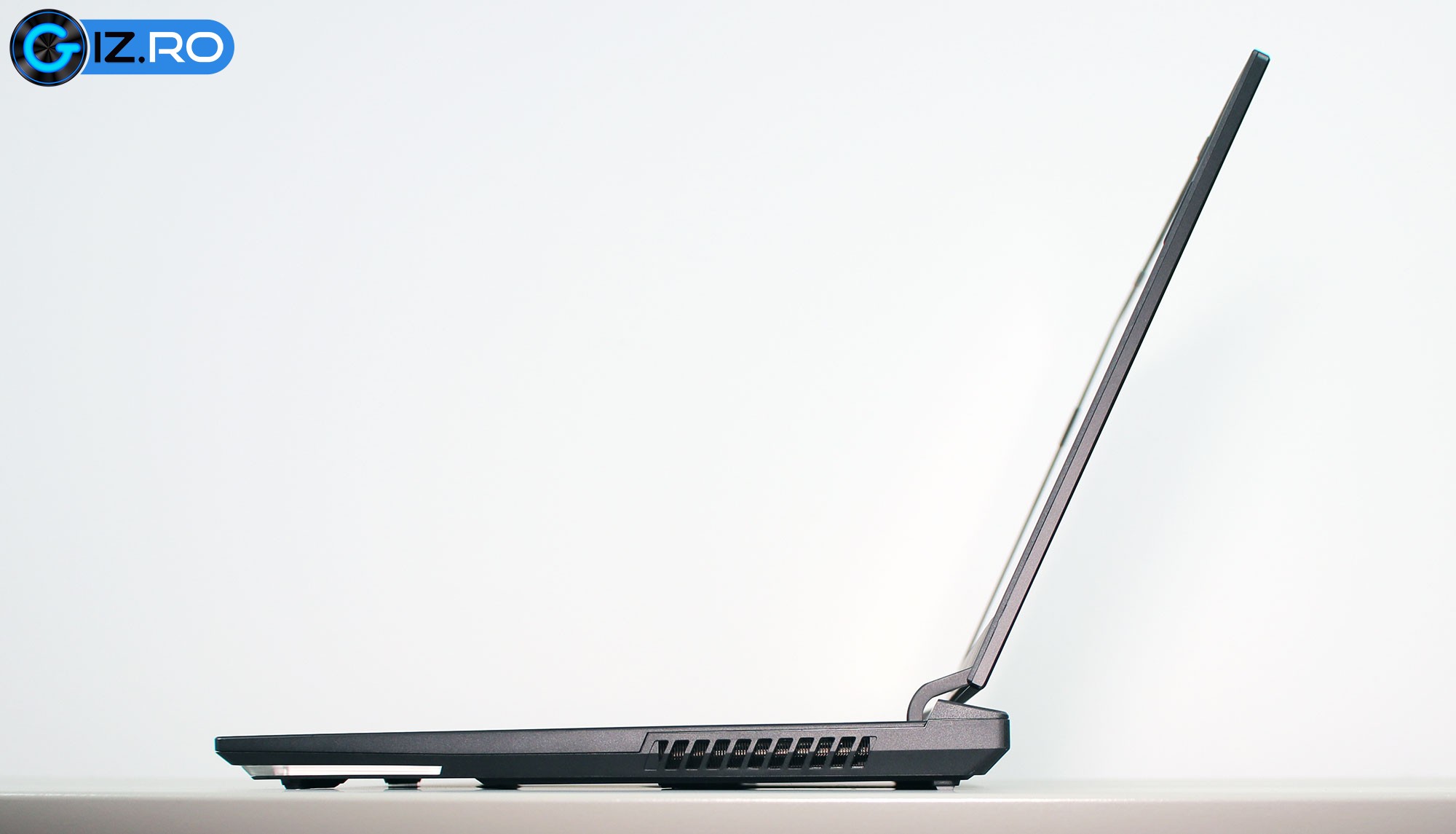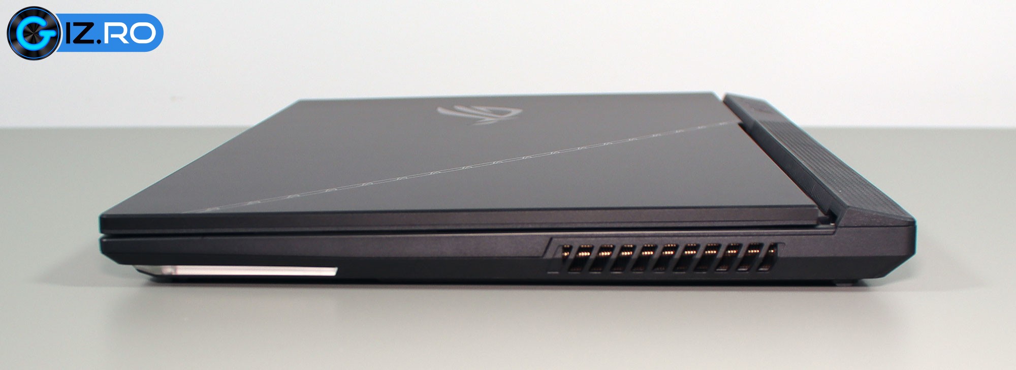 Se observă că avem de-a face cu un design ROG Scar standard, care oferă un capac metalic și un interior fabricat din material plastic plăcut la atingere, dar cam ușor de murdărit. Cam așa arată laptopul după o săptămână de utilizare.