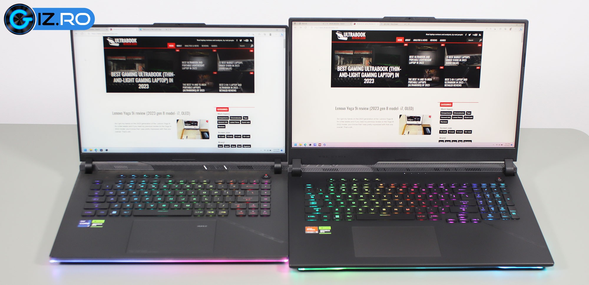 De fapt, pentru o idee mai bună, am pus ROG Strix Scar 17 alături de Scar 16 și Strix G17 alături de Strix G18, din moment ce Strix G și Scar sunt modele identice care diferă doar prin colorit.