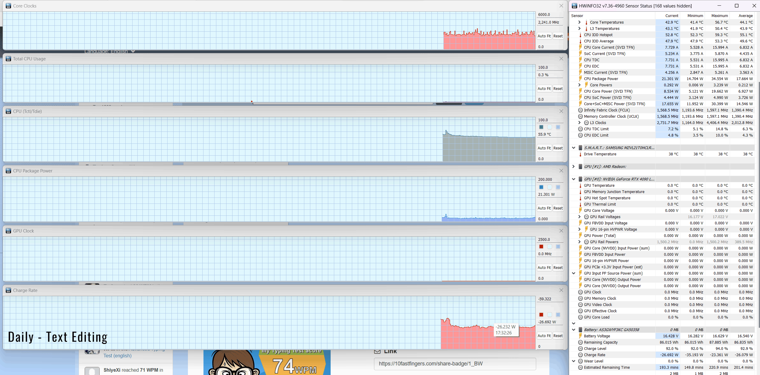 Ryzen 9 7945HX + RTX 4090 Laptop 150-175W | QHD Turbo, dGPU, on desk | FHD Turbo, dGPU, on desk |