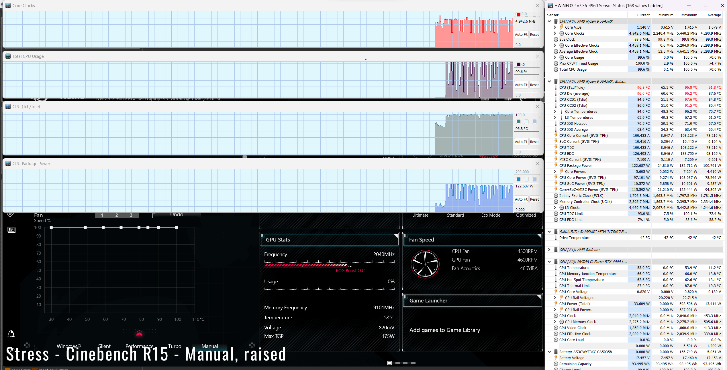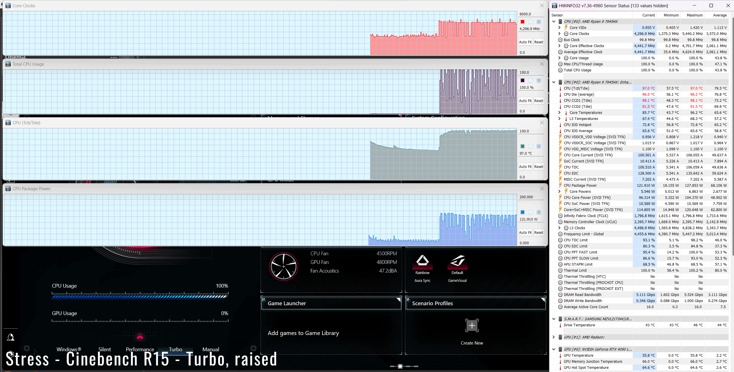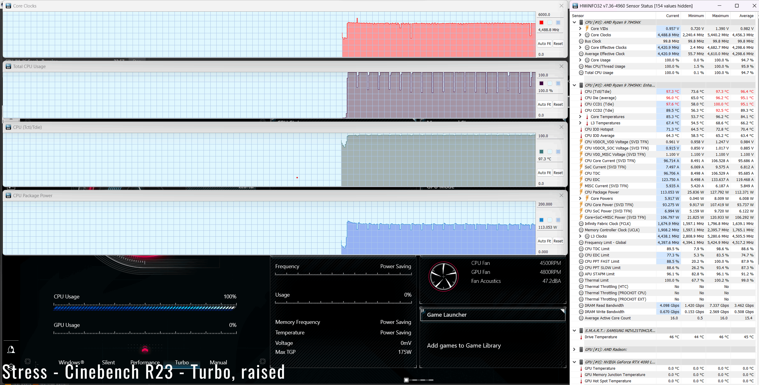 Ryzen 9 7945HX + RTX 4090 Laptop 150-175W | QHD Turbo, dGPU, on desk | QHD Performance, dGPU, on desk | FHD Turbo, dGPU, on desk | FHD Silent, dGPU, on desk |