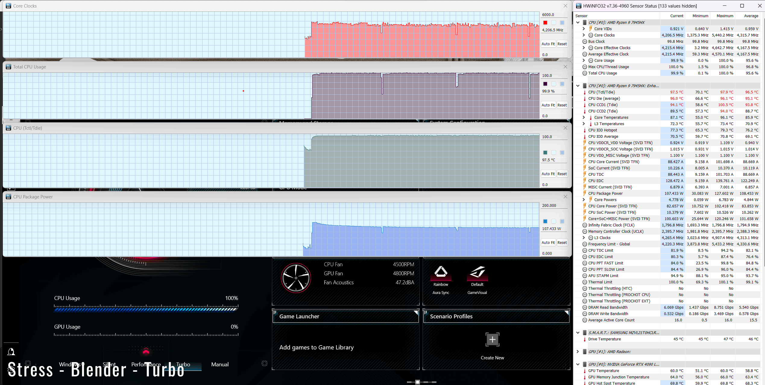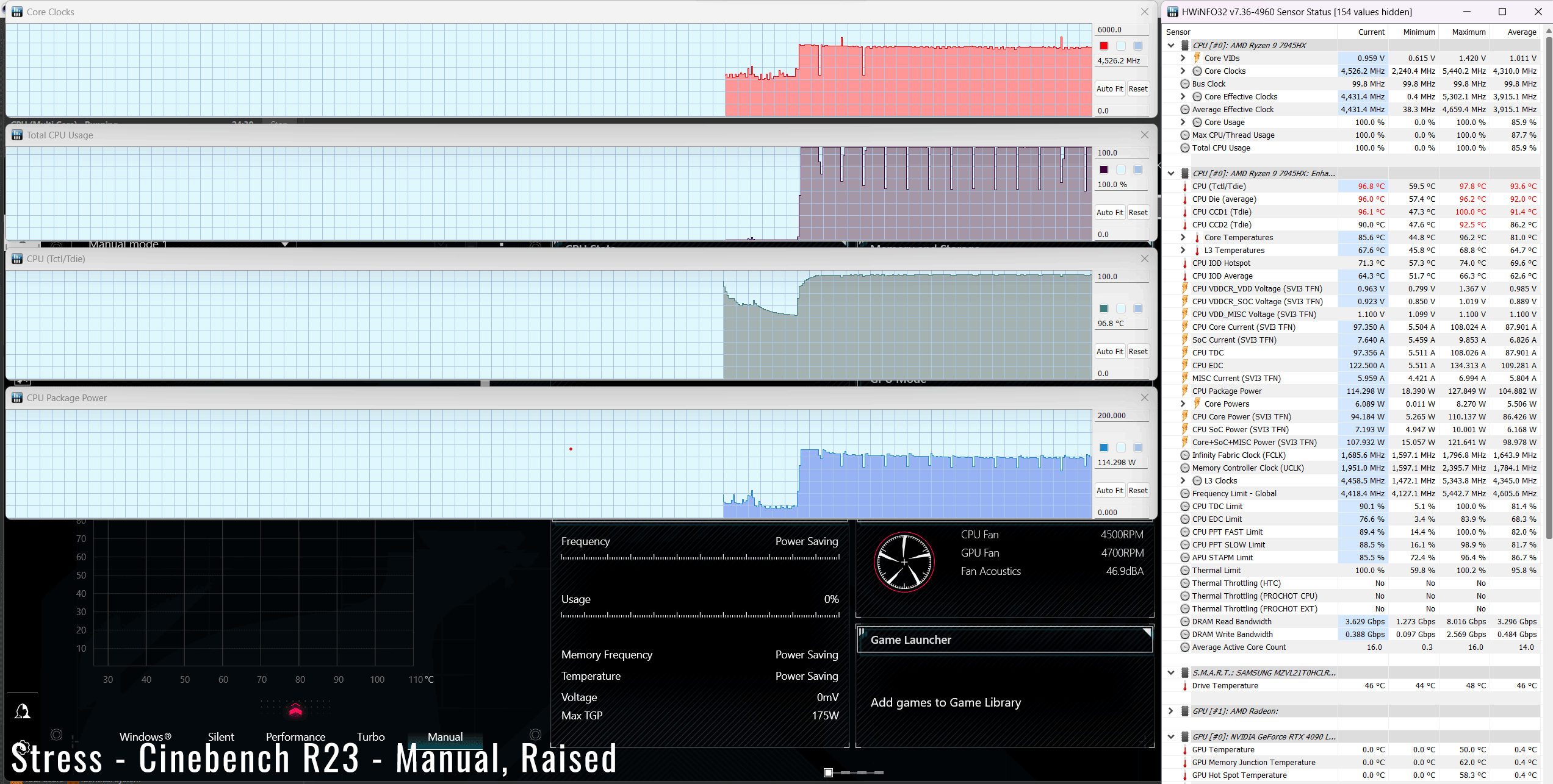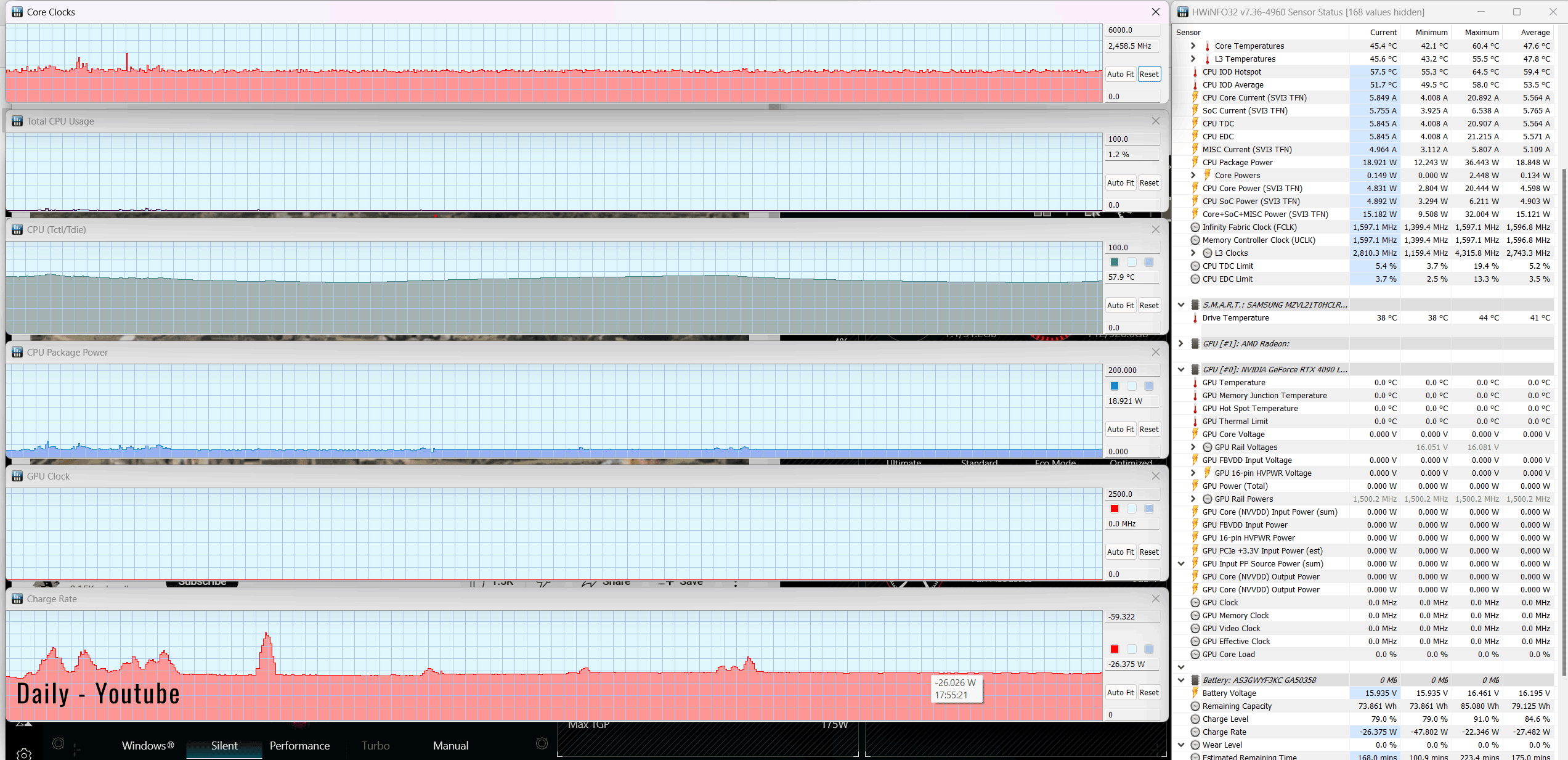 Ryzen 9 7945HX + RTX 4090 Laptop 150-175W | QHD Turbo, dGPU, on desk | QHD Performance, dGPU, on desk | FHD Turbo, dGPU, on desk | FHD Silent, dGPU, on desk |