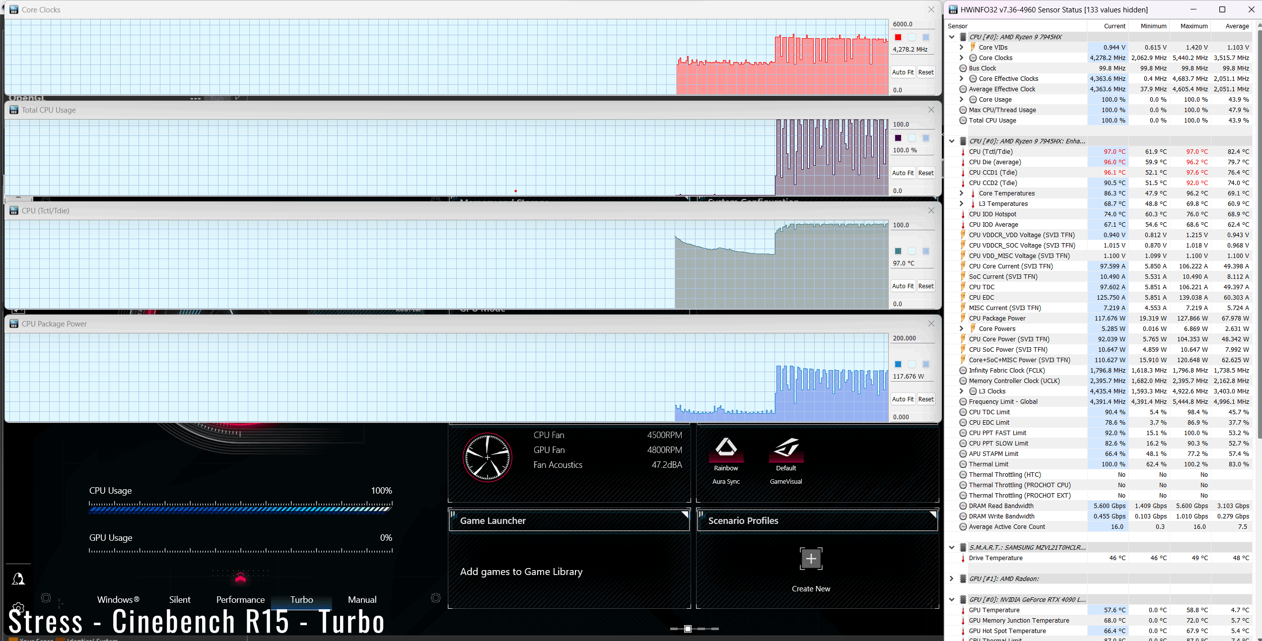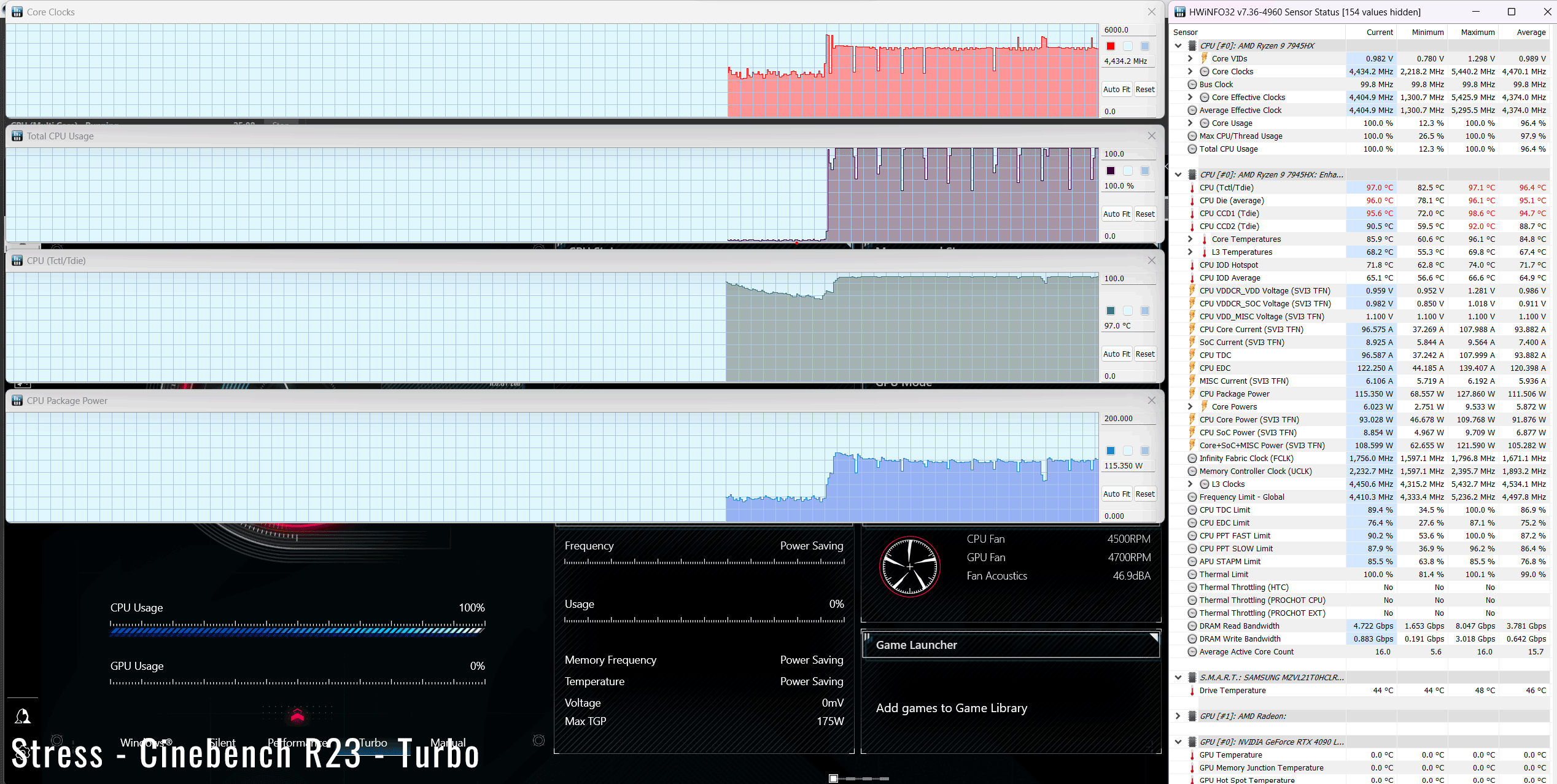 Scar 17 G733PY este al doilea cel mai performant model AMD ROG din această generație, în configurația Ryzen 9 7945HX + RTX 4090 175W despre care discutăm în acest review. Primul loc este rezervat modelului Scar 17 G733PYV, singurul model cu noul procesor 7945HX3D cu 3D V-Cache, o implementare menită să aducă un surplus de performanță în jocuri.
