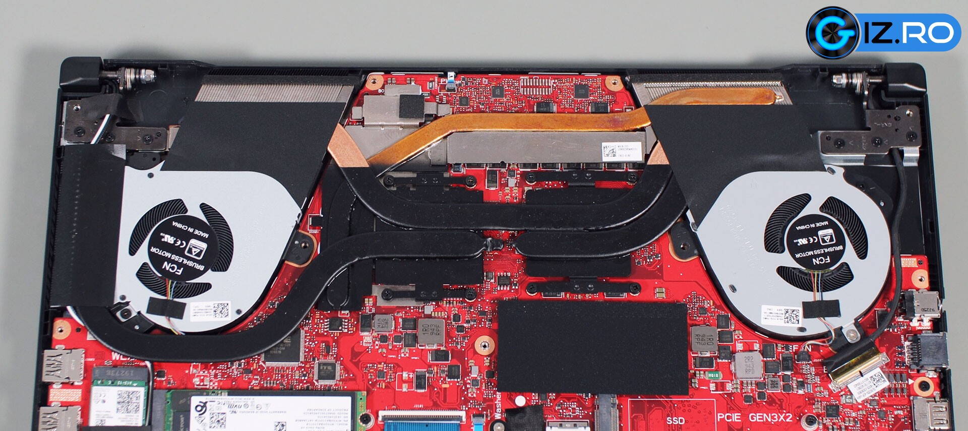 Nu am îndrăznit să înlătur suprafețele de plastic care acoperă ventilatoarele, însă un alt review găsit online afirmă că a constat o scădere de 7 – 10 grade și chiar o îmbunătățire a performanțelor după această operațiune, care nu poate fi făcută însă fără pierderea garanției. ASUS afirmă că implementarea este în regulă pentru că asigură un flux de aer peste toate componentele din interior, însă rămân la părerea că implementarea are probleme de concepție.