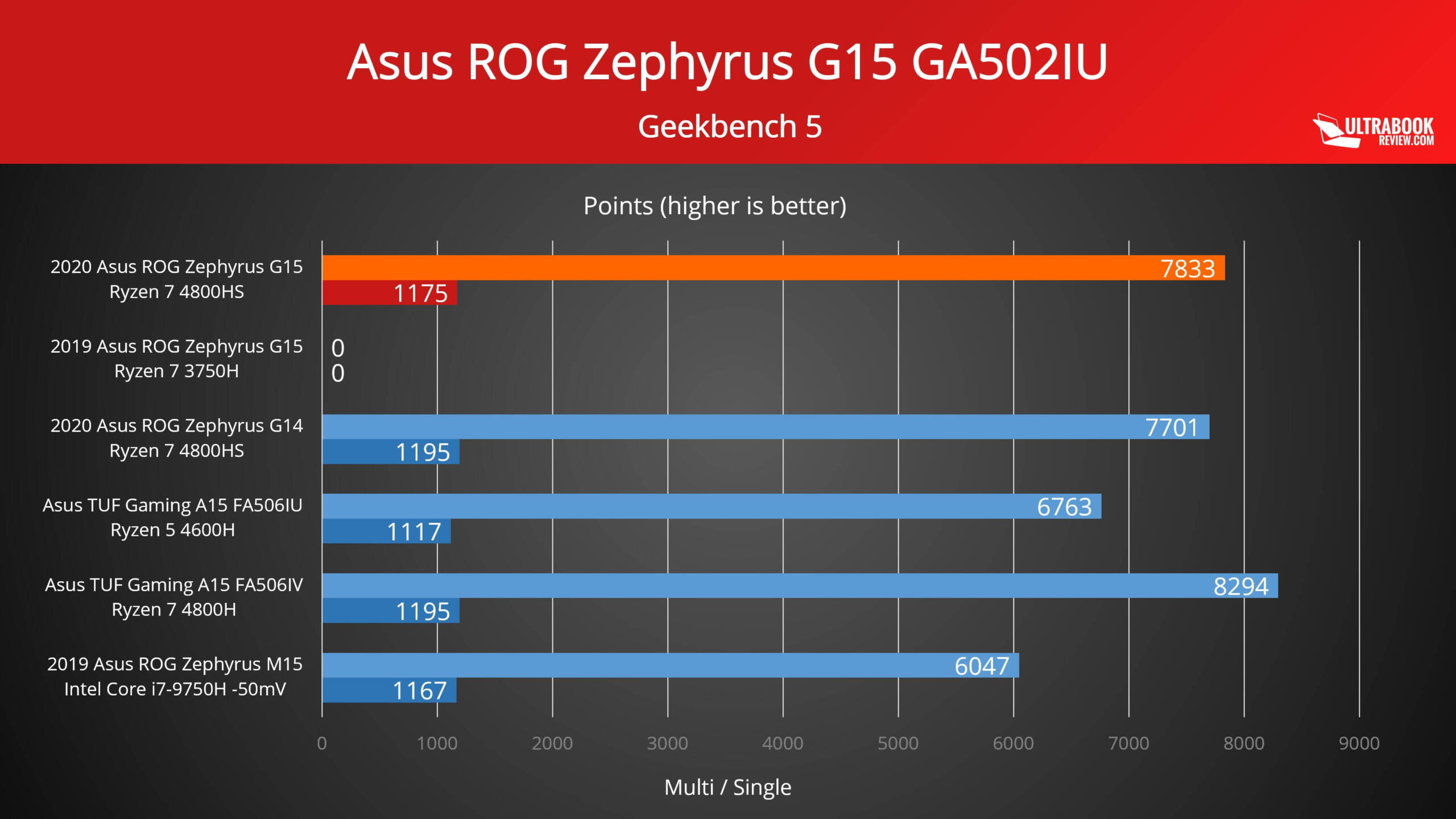 Zephyrus G15 este oferit în unele regiuni și cu un procesor AMD Ryzen 9 4900HS, însă trebuie menționat că acesta este în mare similar cu Ryzen 7, oferind doar frecvențe de lucru ceva mai mari și o interfață grafică puțin îmbunătățită. Aceste procesoare Ryzen HS sunt cam ceea ce are mai bun de oferit AMD în acest moment, fiind vorba de modele cu o eficiență energetică mai bună decât cea a mai cunoscutelor Ryzen H din laptopurile mai mari, reducerea TDP-ului maxim de la 45W la 35W făcându-le optime pentru ultrabook-uri.