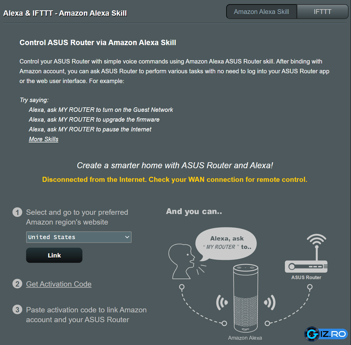 - Alexa & IFTTT – control vocal al routerului prin Amazon Alexa și sarcini automatizate prin integrarea cu IFTTT (if this then that).