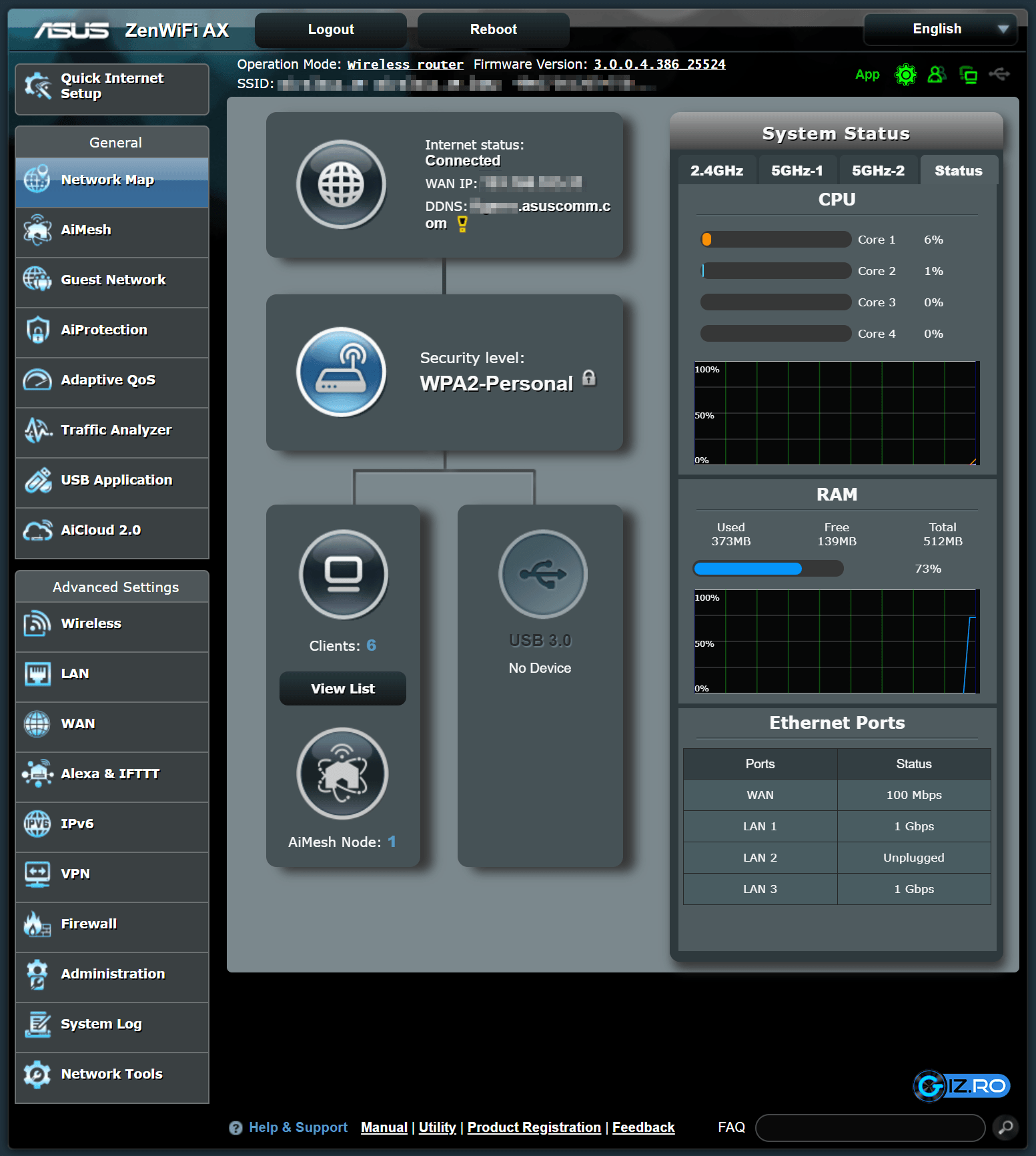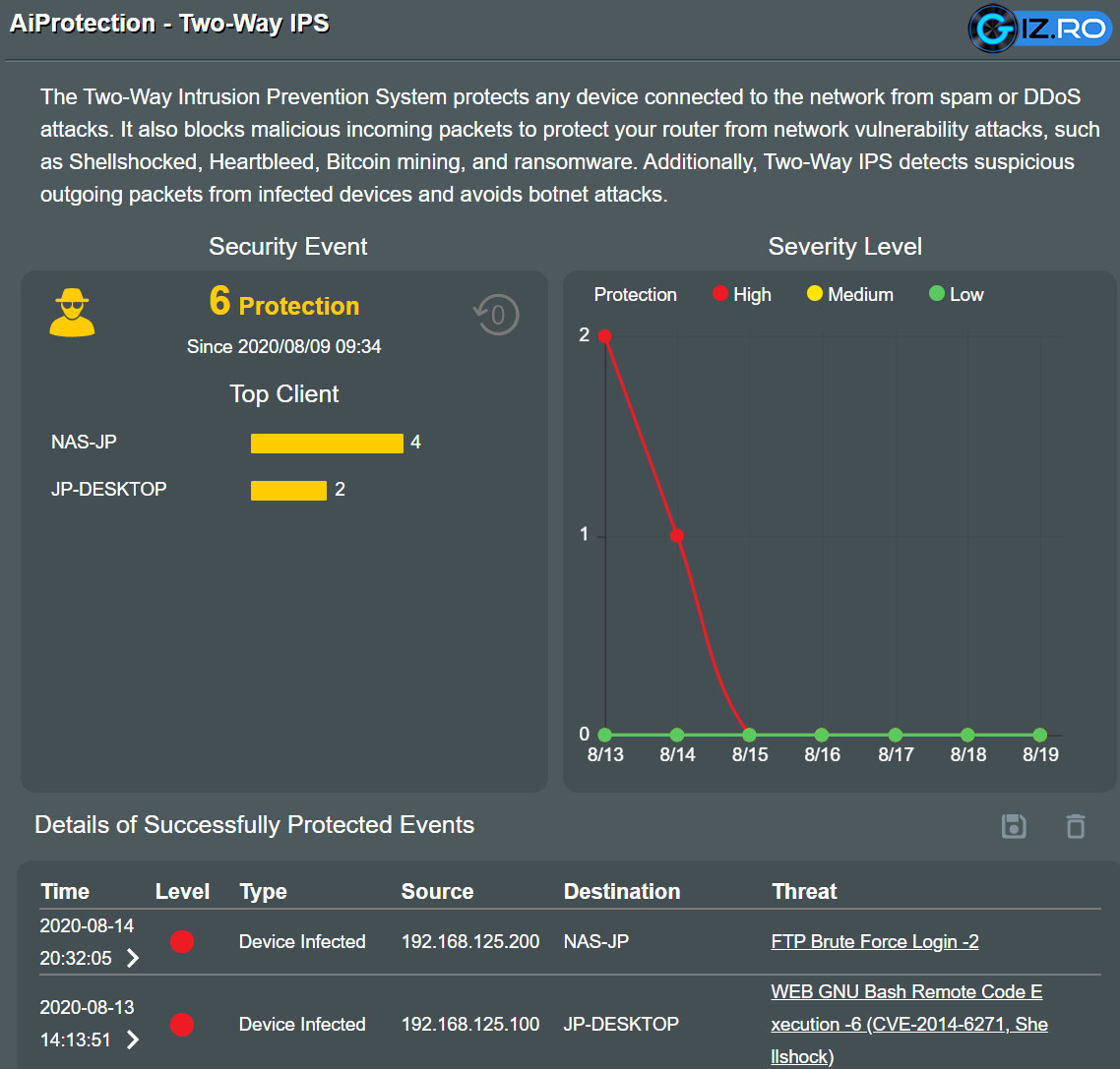 - AiProtection – în colaborare cu TrendMicro este un meniu cu multiple opțiuni de securitate și control parental;