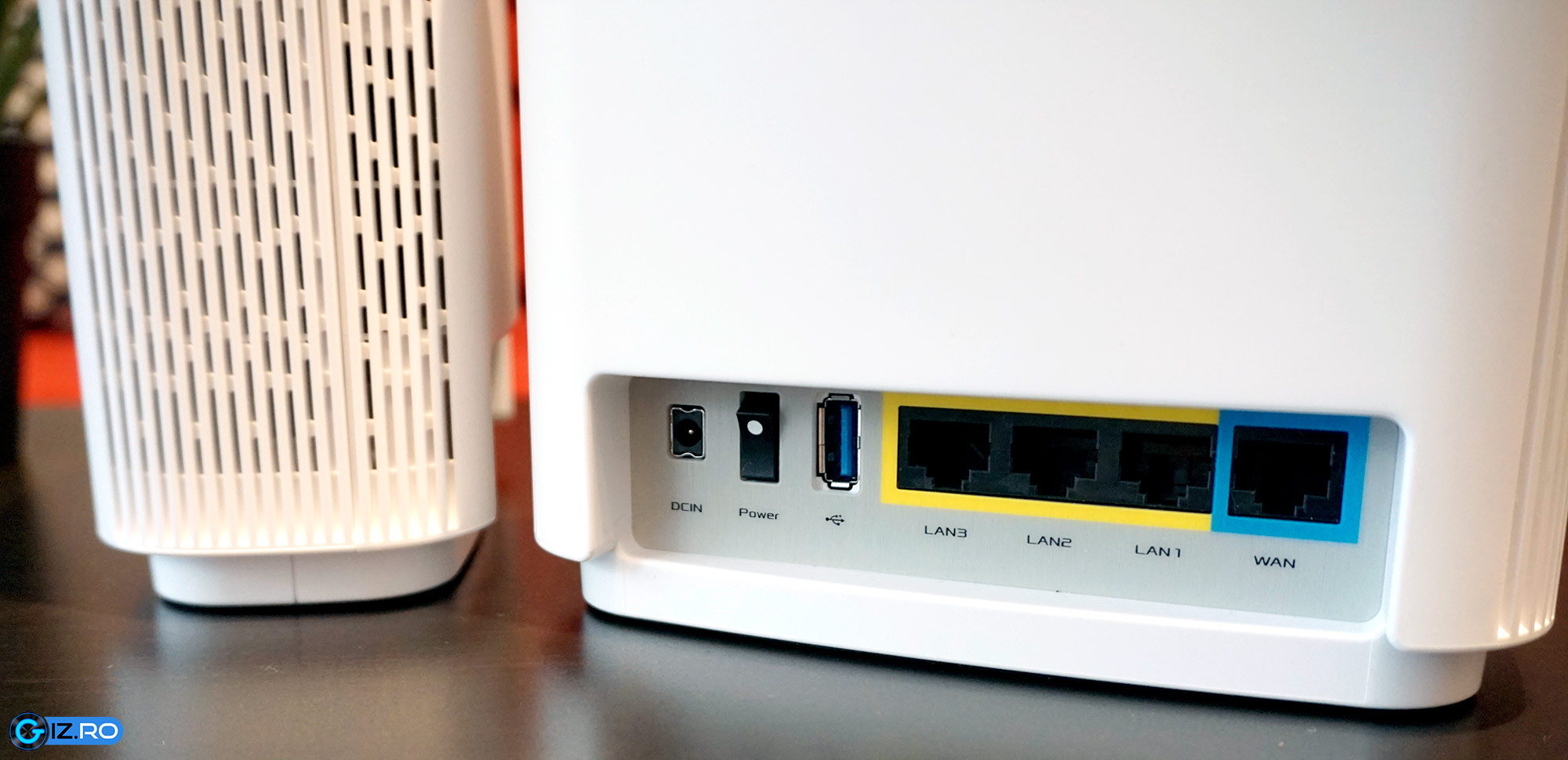 Cum am spus, simultan cu ZenWiFi AX (XT8) am avut la test și un sistem aproape identic ZenWiFi AC (CT8). Dacă nu ar fi fost inversate cateva porturi și mufe în spatele celor doua noduri nici nu ți-ai fi dat seama că sunt modele diferite.