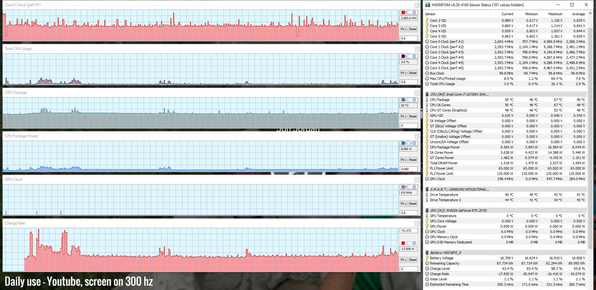 MSI GS66 Stealth are un consum mai mare decât alte modele bazate pe i7-10750H, deci și autonomiile sunt ceva mai scurte decât cele așteptate.