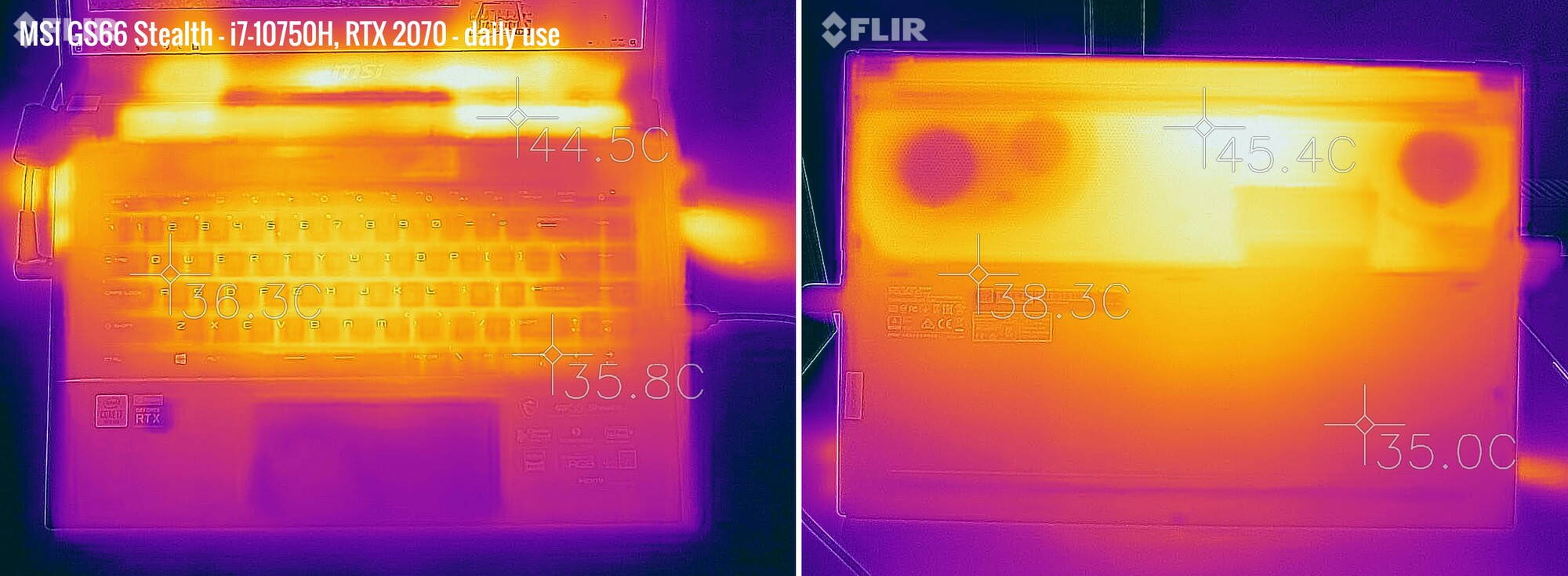 GS66 nu are nici o problemă cu sarcinile uzuale, iar dacă ventilatoarele sistemului de răcire nu se opresc niciodată, acestea sunt aproape insesizabile în mod normal.