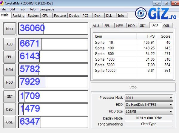 În termeni de performanţă brută, NB550D m-a impresionat la capitolul multimedia şi la performanţele grafice. Cel mai bun exemplu este calitatea oferită la rularea conţinutului multimedia HD, indiferent că este vorba despre clipuri YouTube sau fişiere în format MKV. Totuşi, trebuie să menţionez că la rezoluţie Full HD 1080p am întâmpinat unele probleme de redare, însă există şi situaţii fericite în care clipurile rulează fluent.