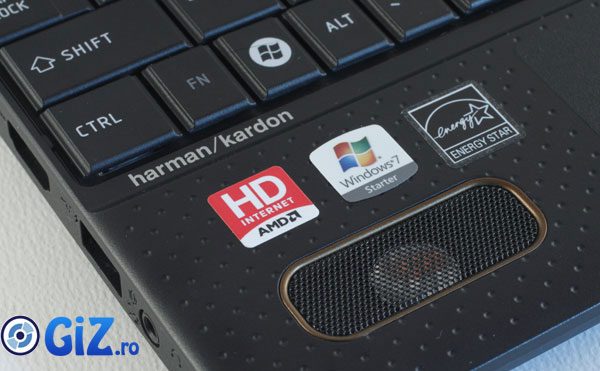 După ce am deschis capacul, primul lucru care mi-a sărit în ochi nu a fost display-ul sau tastatura, ci… boxele stereo amplasate pe palm rest. Un design într-adevăr total neconvenţional, însă pe de altă parte prezenţa boxelor stereo în această zonă nu îţi va crea niciun fel de problemă în utilizarea tastaturii şi cu atât mai puţin pe plan estetic. Şi chiar dacă nu îţi place acest design, calitatea bună a sunetului te va convinge că nu este decât un compromis foarte bun.